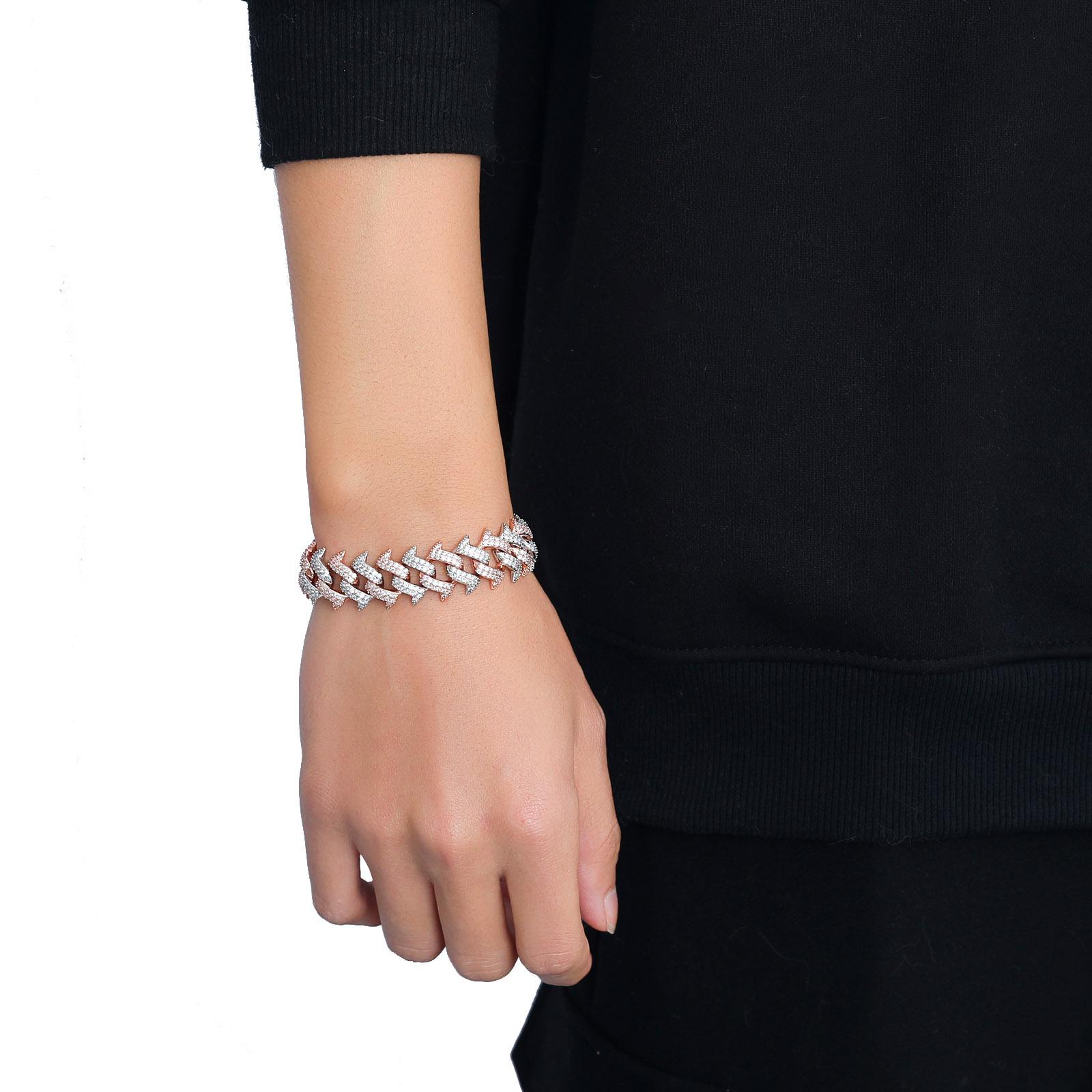 Nombre del Artículo/Producto: Pulsera Cubana de Espinas con Púas de Zircón Rosa y Blanco de 18 mm