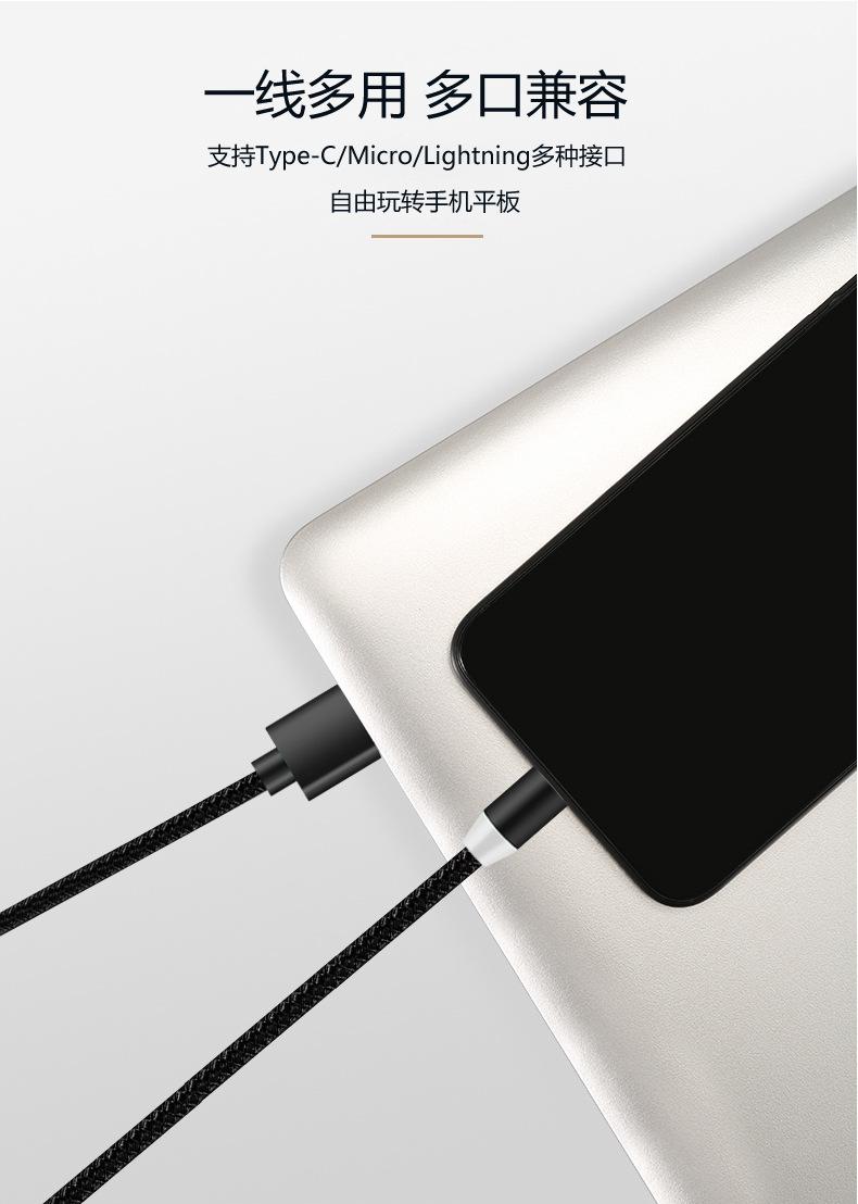 Ventajas del producto: Adopta núcleo de alambre de cobre compuesto, alambre interno de TPE, capa trenzada de red de pesca. El alambre es suave, duradero, no se anuda fácilmente, con un tacto delicado, de alta gama y texturizado, lo que puede resolver su problema de carga lenta.