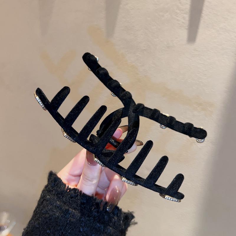 Horquilla grande de 13 cm con forma de tiburón y diamantes de imitación para el pelo, color negro