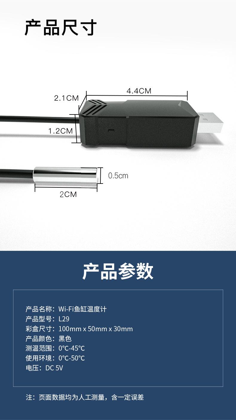 Termómetro para pecera, medidor de temperatura del agua, alarma de temperatura WiFi, sensor detector de temperatura del agua, monitoreo remoto del acuario