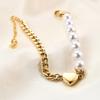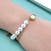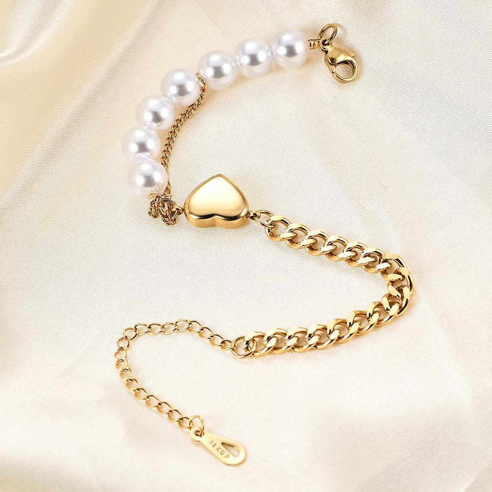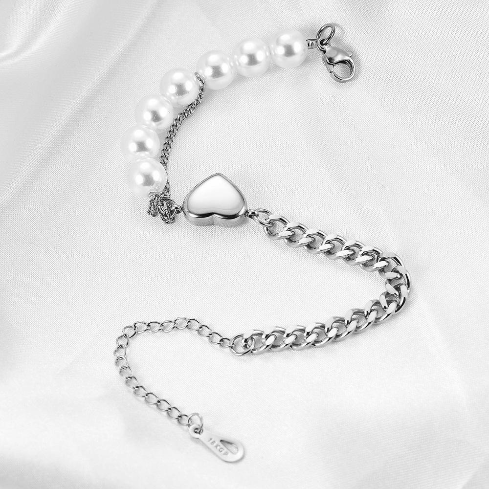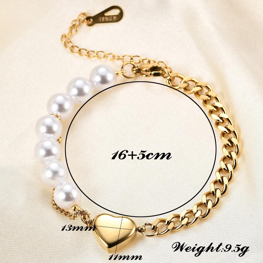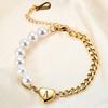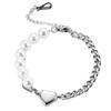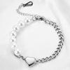 Temperamento Transfronterizo Europeo y Americano Versátil Acero Inoxidable Corazón Empalme Perla de Imitación Pulsera de Cadena Cubana para Mujer Logotipo Láser Venta al por Mayor