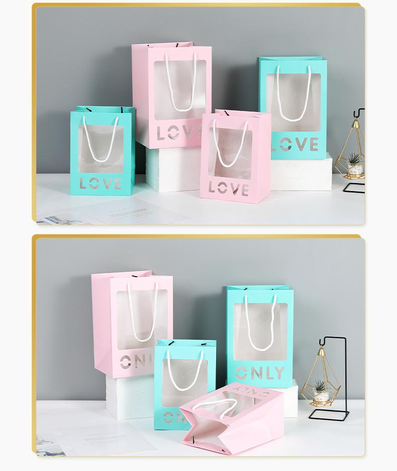 Bolsa de regalo transparente con ventana para el Día del Maestro, bolsa de papel, bolsa de regalo con flores, bolsa de embalaje, regalo de mano al por mayor