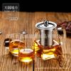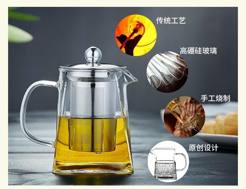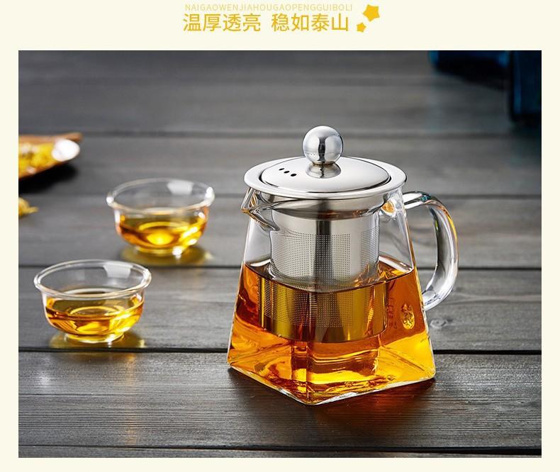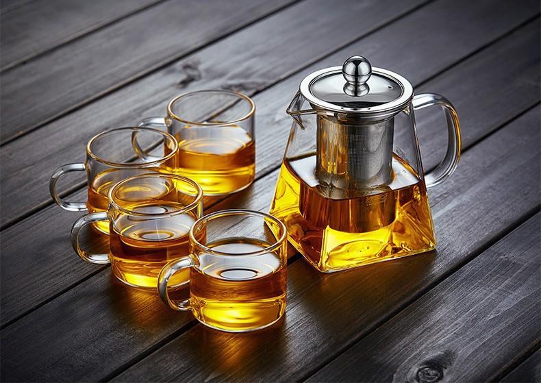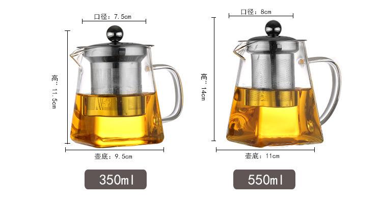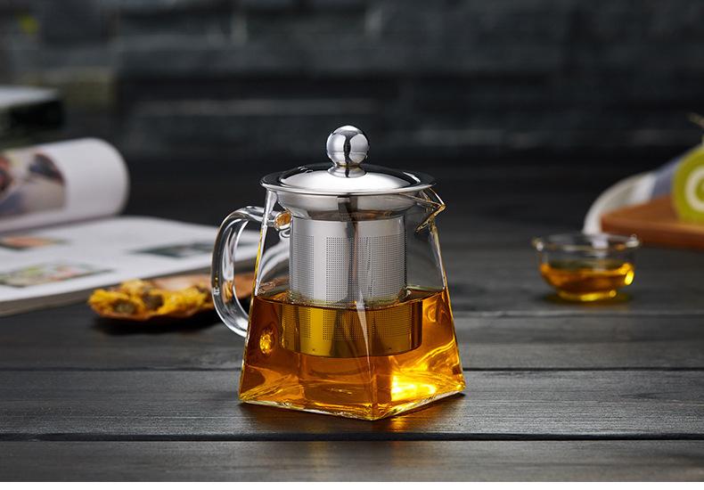 Tetera de vidrio resistente al calor, tetera de flores de borosilicato alto, taza justa, tetera de acero inoxidable con colador, tetera de vidrio resistente al calor