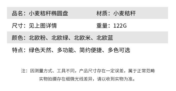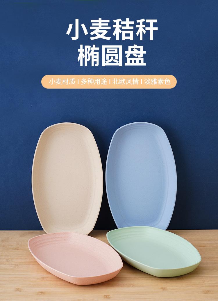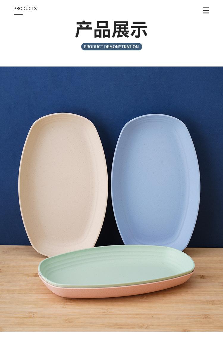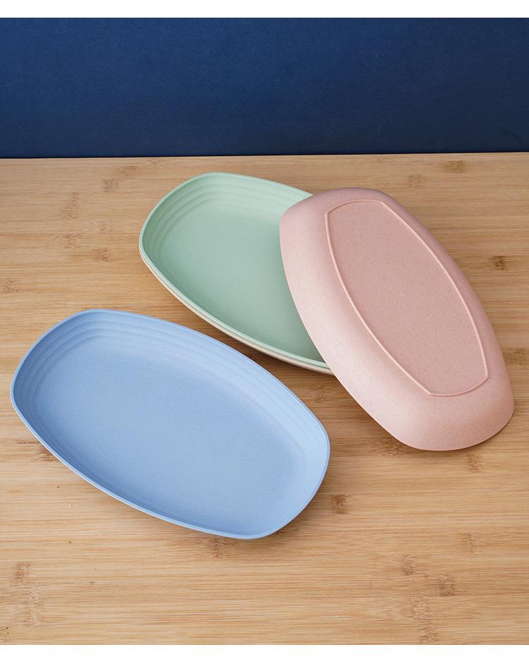 Plato ovalado de paja de trigo, plato de pescado, plato rectangular grande, plato para hornear al vapor, plato para bolas de masa, plato de cena simple y grueso