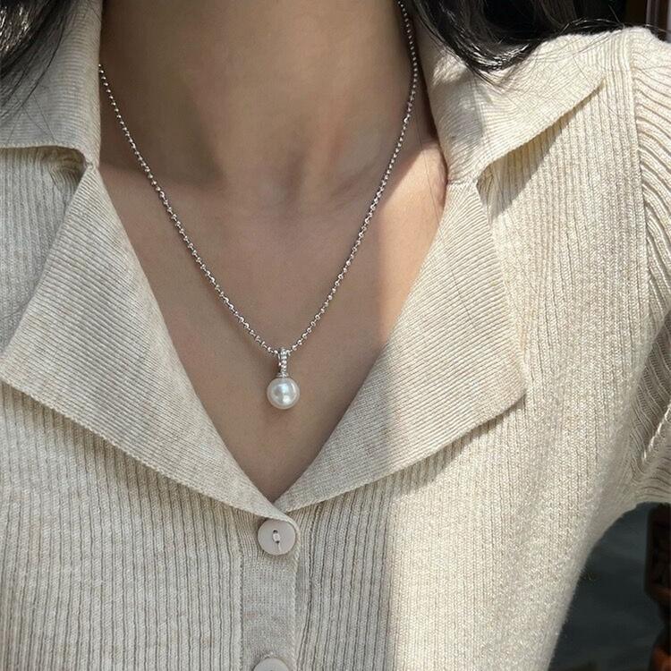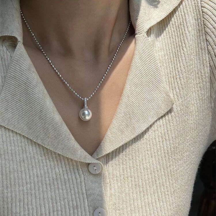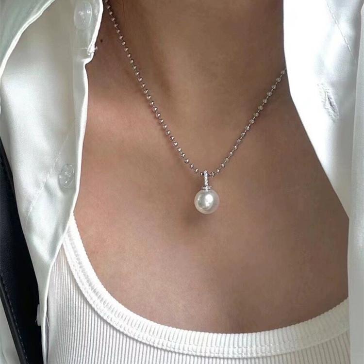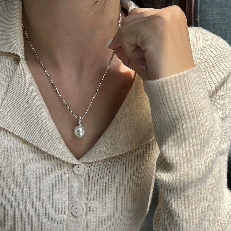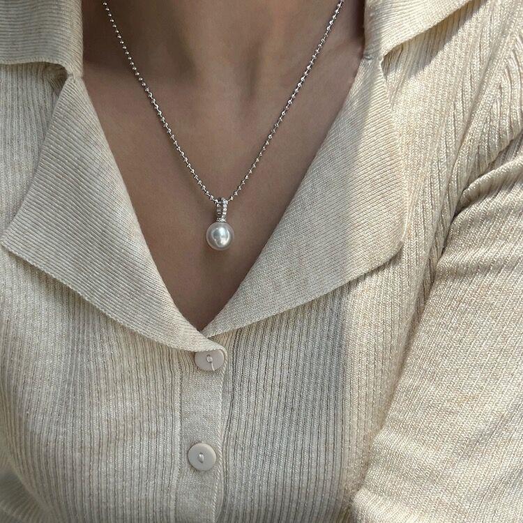 Collar con colgante de perla única y hebilla de circonita micropavé para mujer, diseño de nicho versátil, cadena para clavícula, cadena para el cuello, cadena para suéter