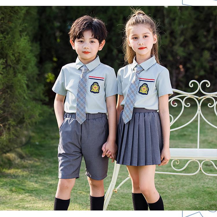 Uniforme escolar para estudiantes de primaria, camisa de verano, uniforme de clase de actuación de graduación para niños, uniforme de jardín de infantes, ropa de verano, traje universitario