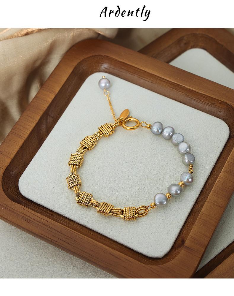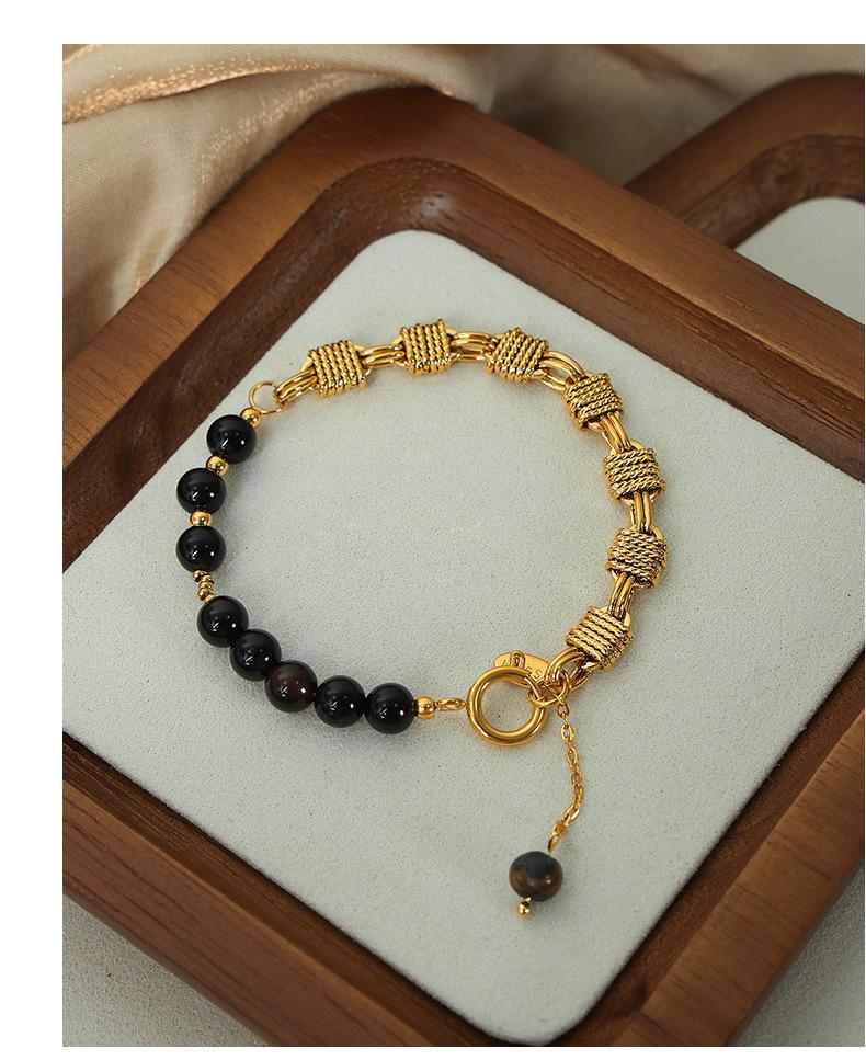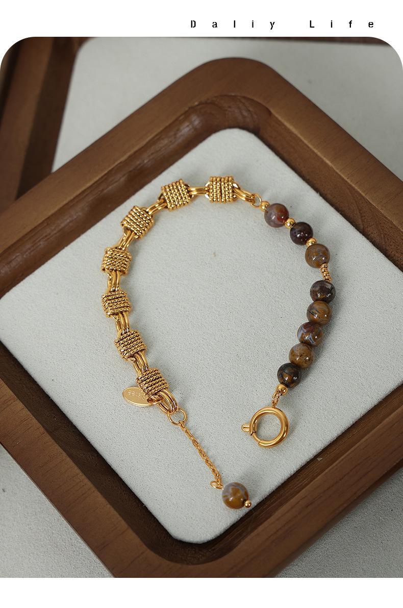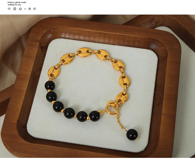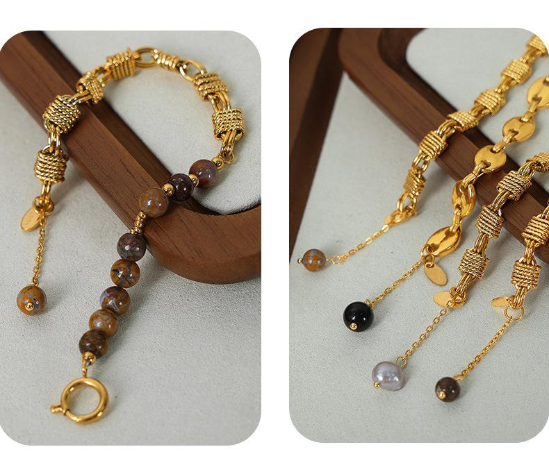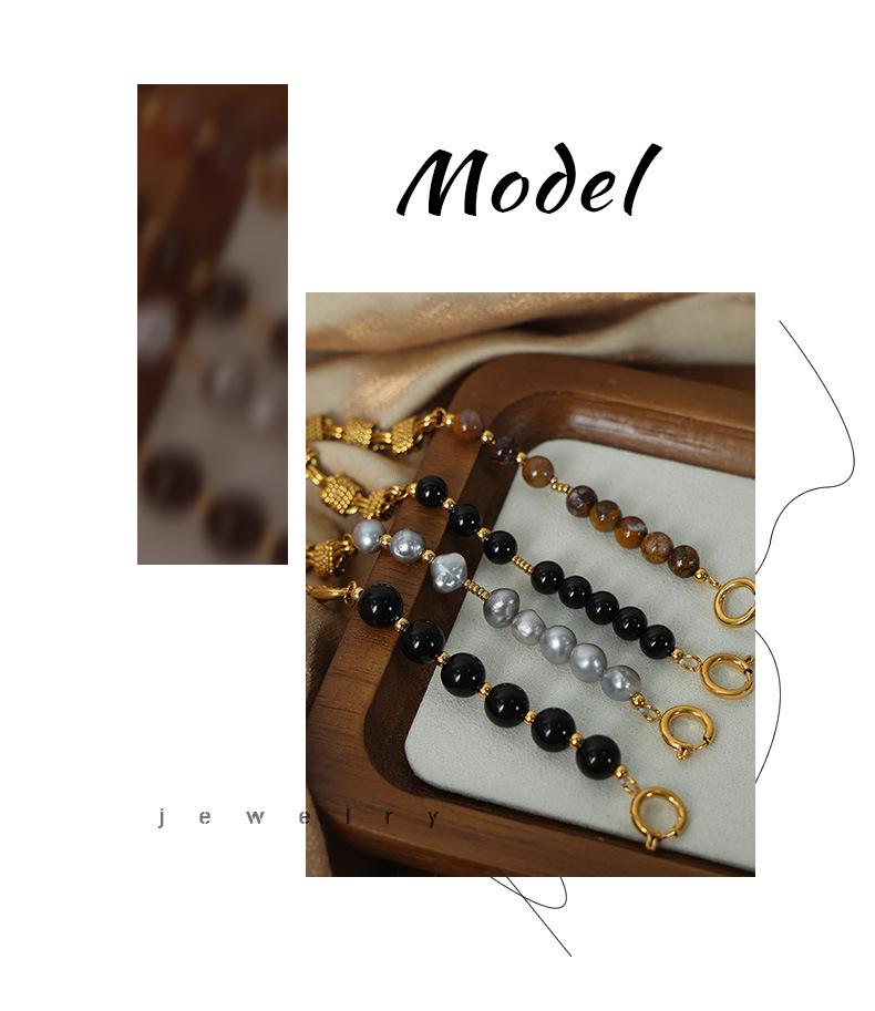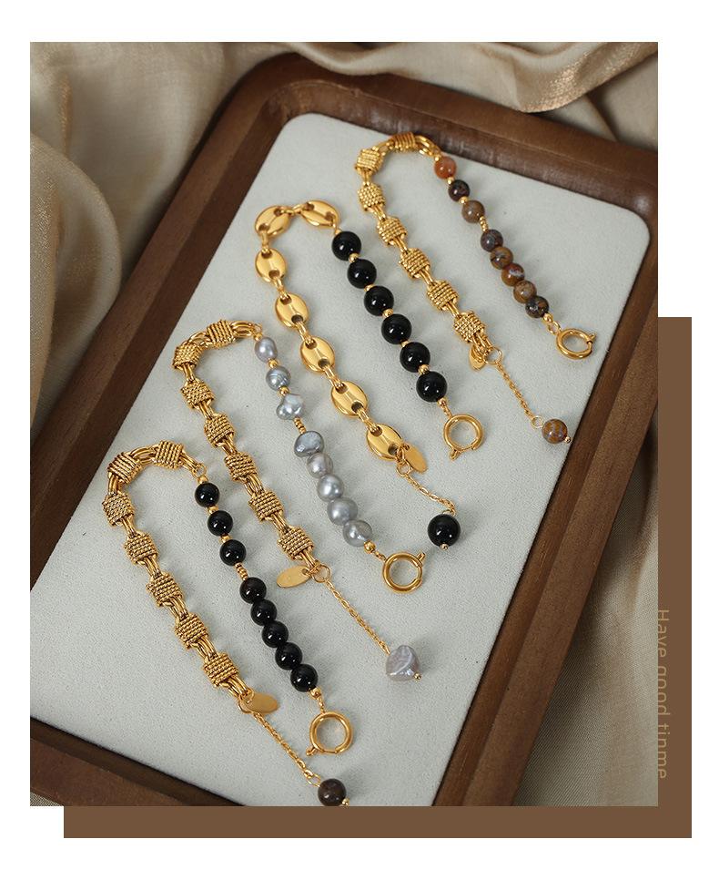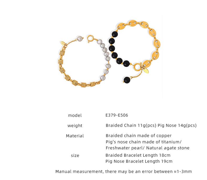 Pulsera sencilla de acero de titanio con estilo frío para viajero, personalidad de nudo, costuras de hocico de cerdo, cadena, perla de agua dulce, ágata con cuentas