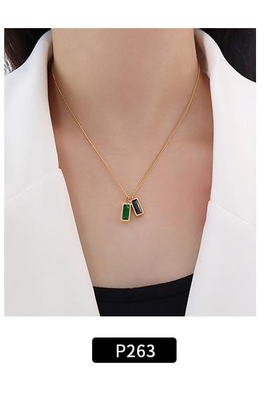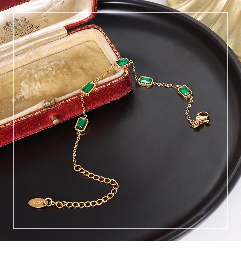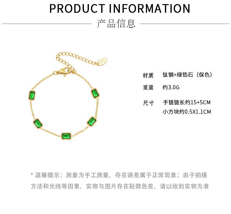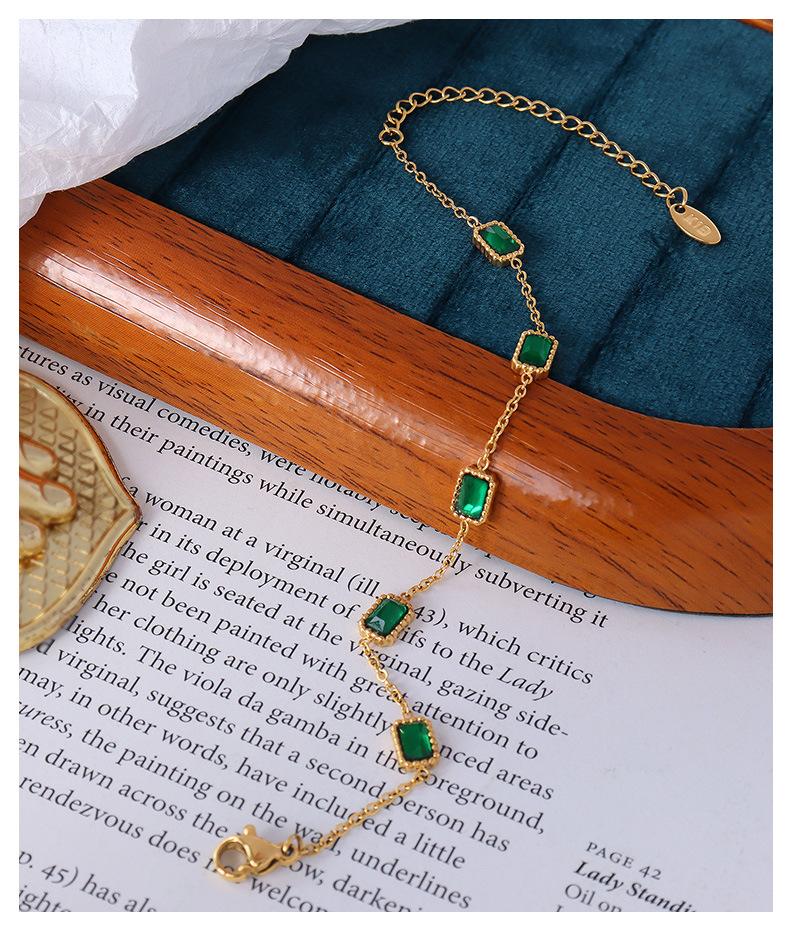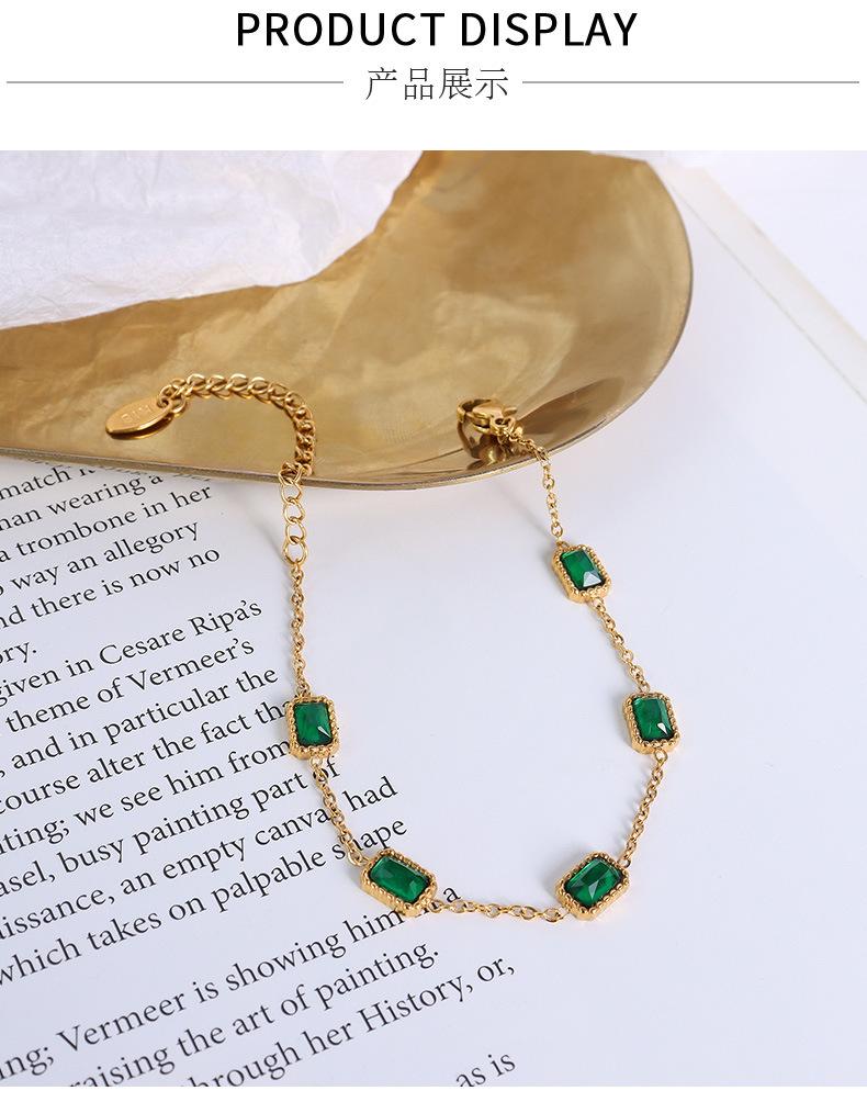 Pulsera europea y americana ins viento frío nicho sentido del diseño incrustada esmeralda circón oro cuadrado acero titanio 18K E002