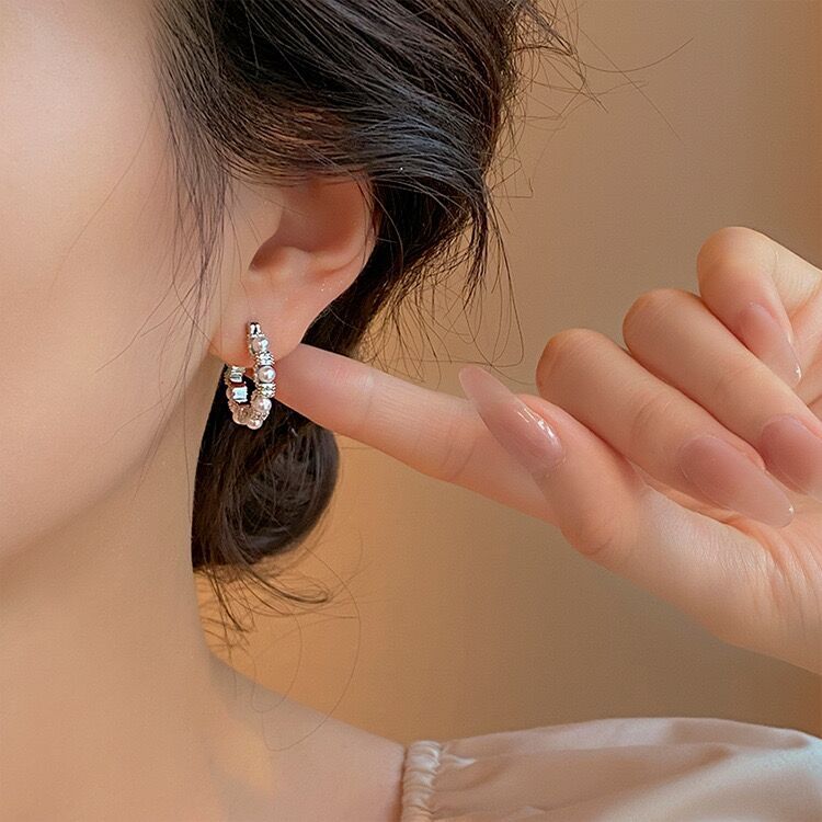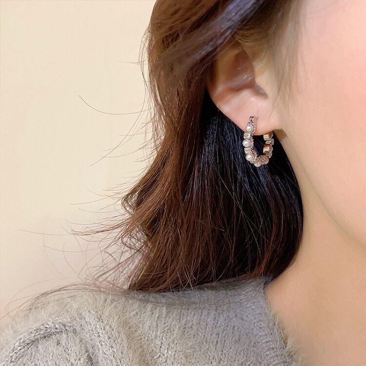 Metal white pearl ear buckle, Metal gray pearl ear buckle