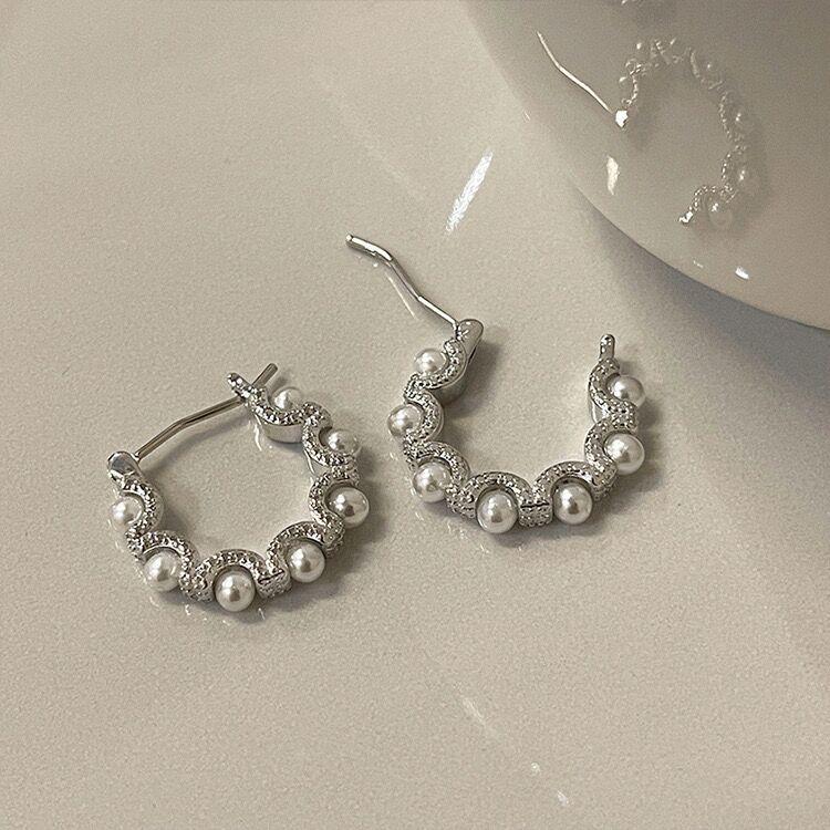 Pendientes de perlas de metal con diseño de nicho circular para mujer, pendientes de personalidad elegantes de lujo ligeros retro, pendientes que combinan con todo.