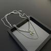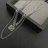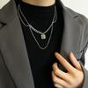 Collar de acero de titanio de doble capa con diamantes cuadrados verdes de alta calidad, diseño de nicho femenino, estilo frío, cadena de clavícula de estilo coreano simple.