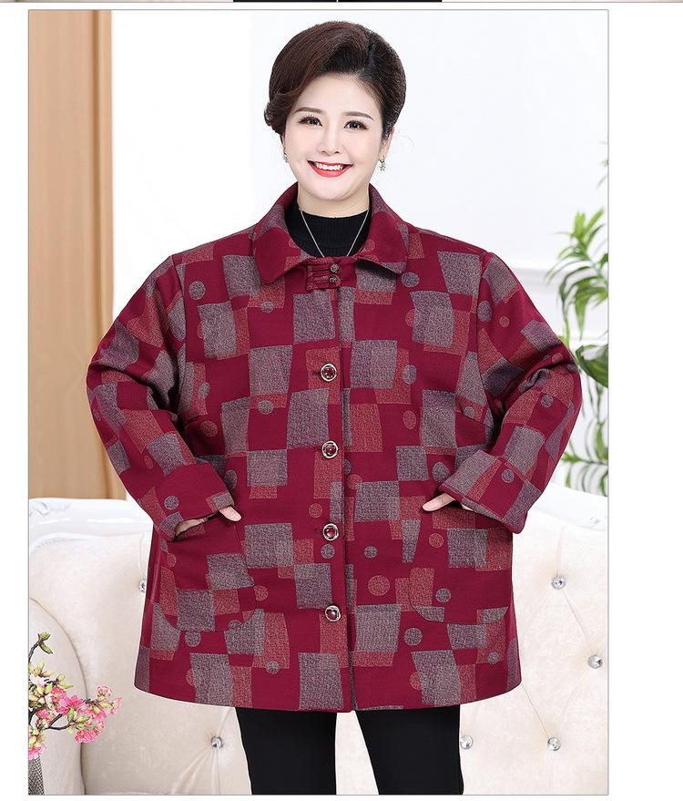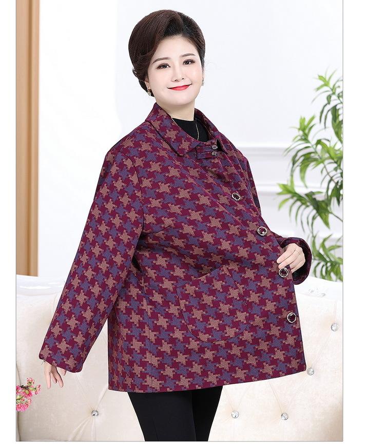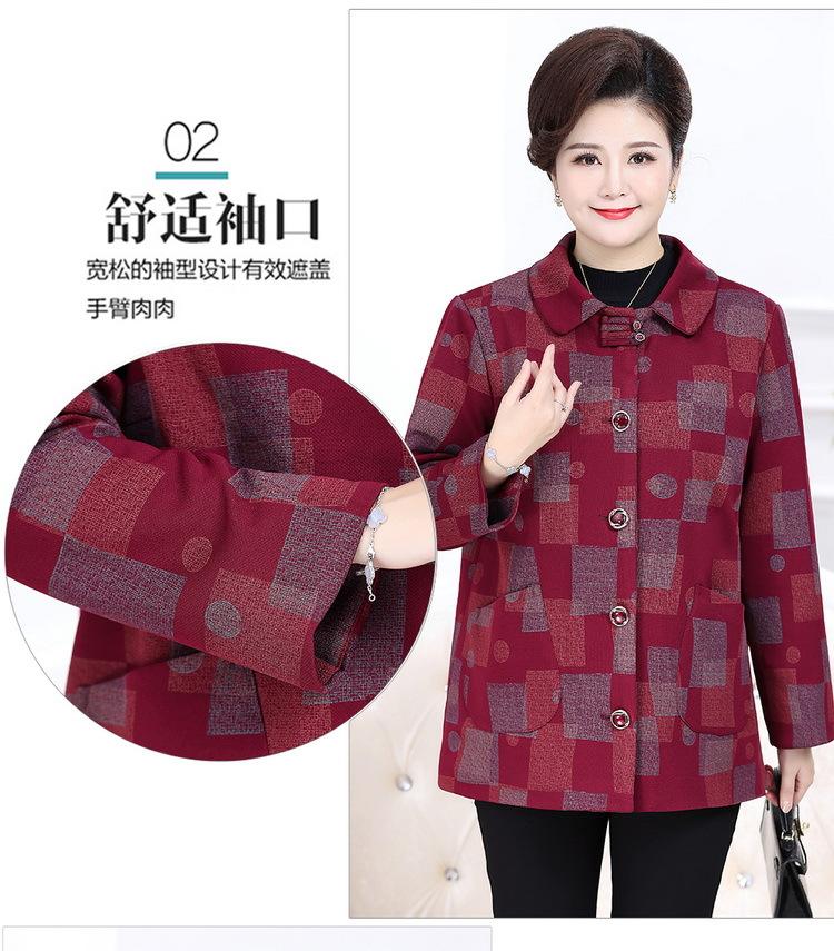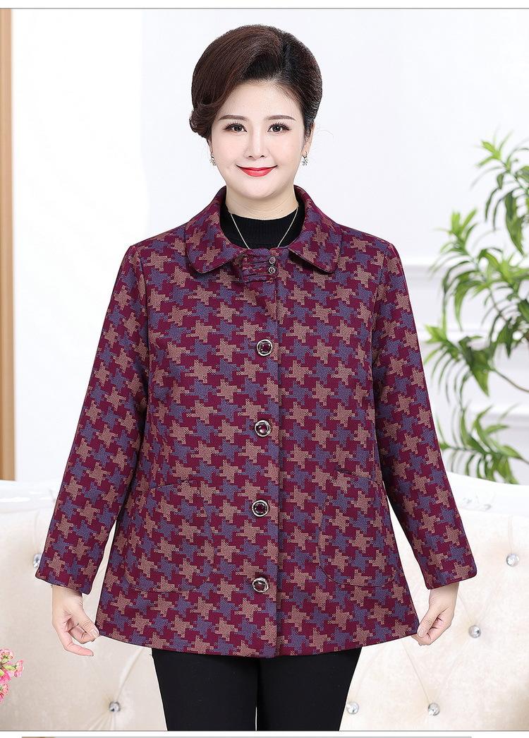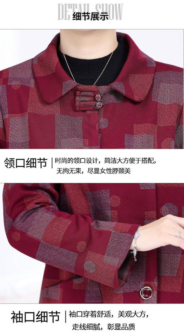 Abrigo a cuadros de primavera para mamás de 200 jin, mujeres de talla grande, de mediana edad y mayores, gabardina fina informal de primavera y otoño.
