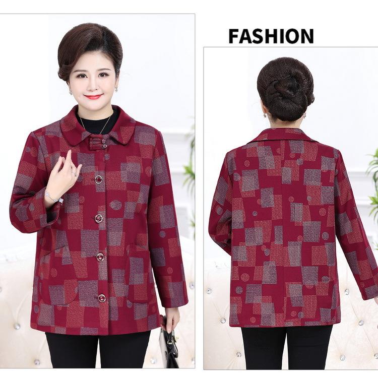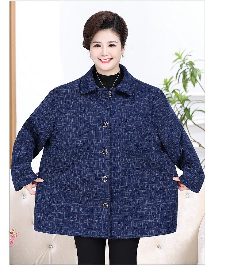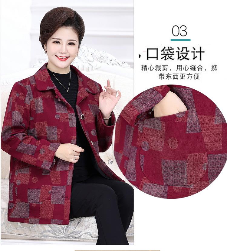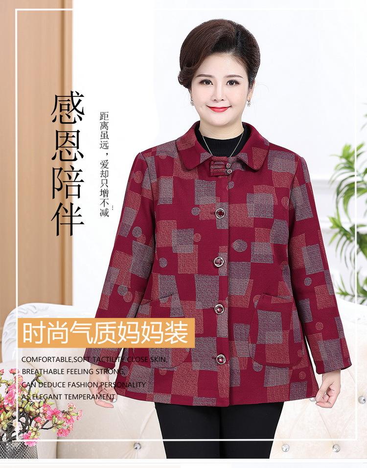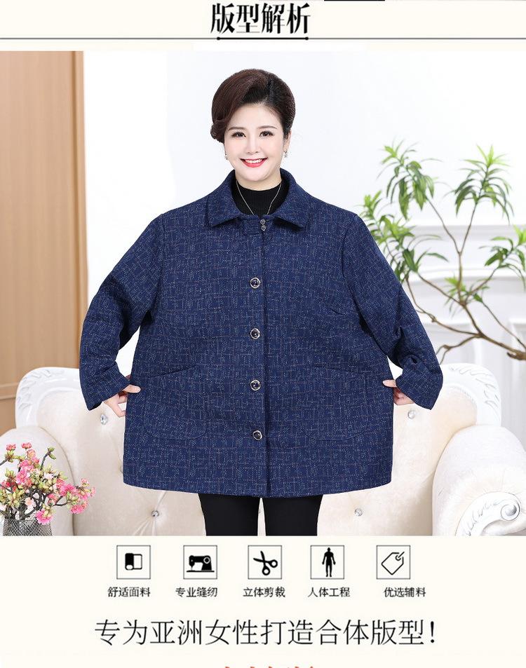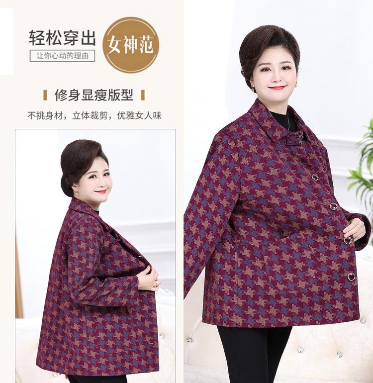 Abrigo a cuadros de primavera para mamás de 200 jin, mujeres de talla grande, de mediana edad y mayores, gabardina fina informal de primavera y otoño.
