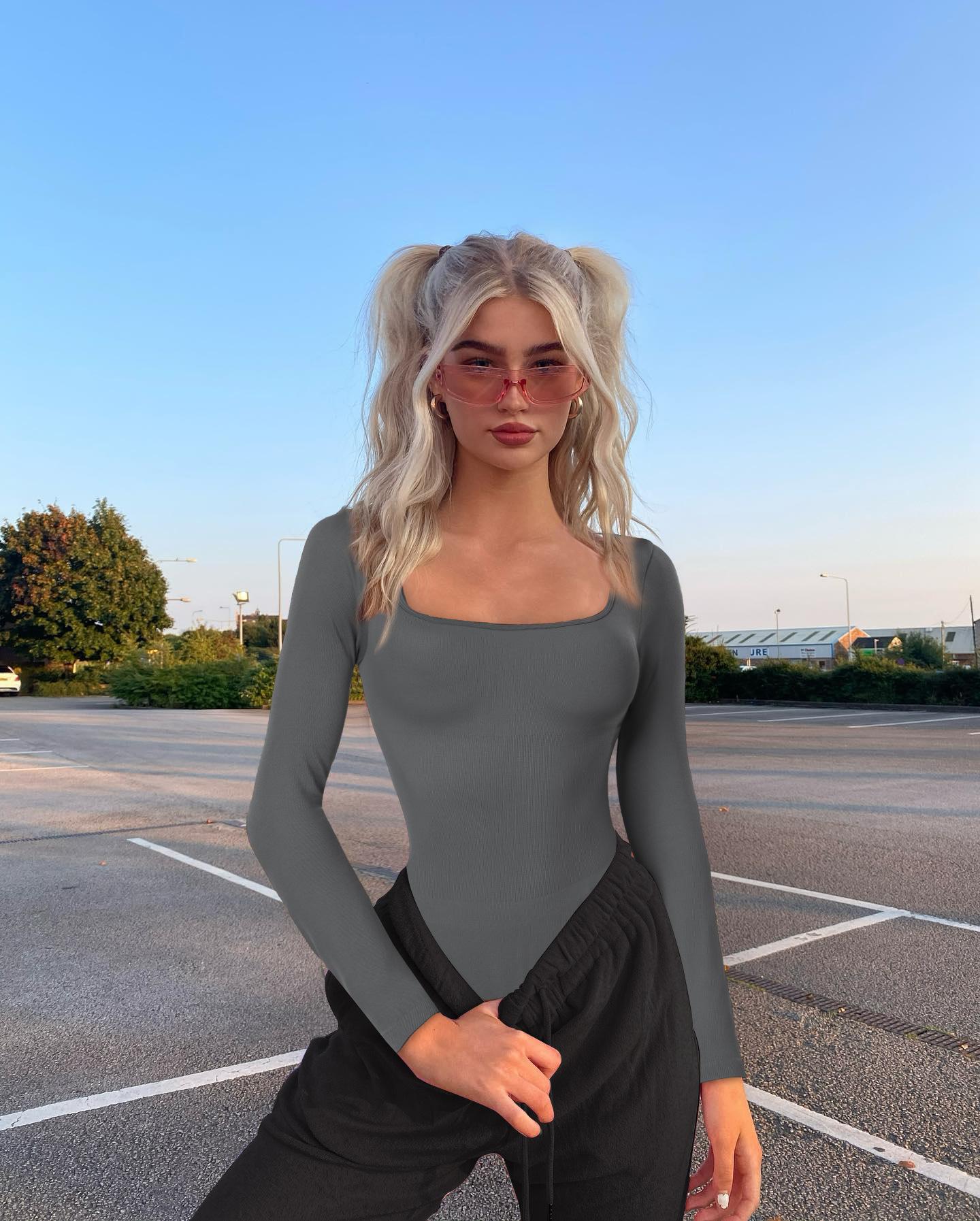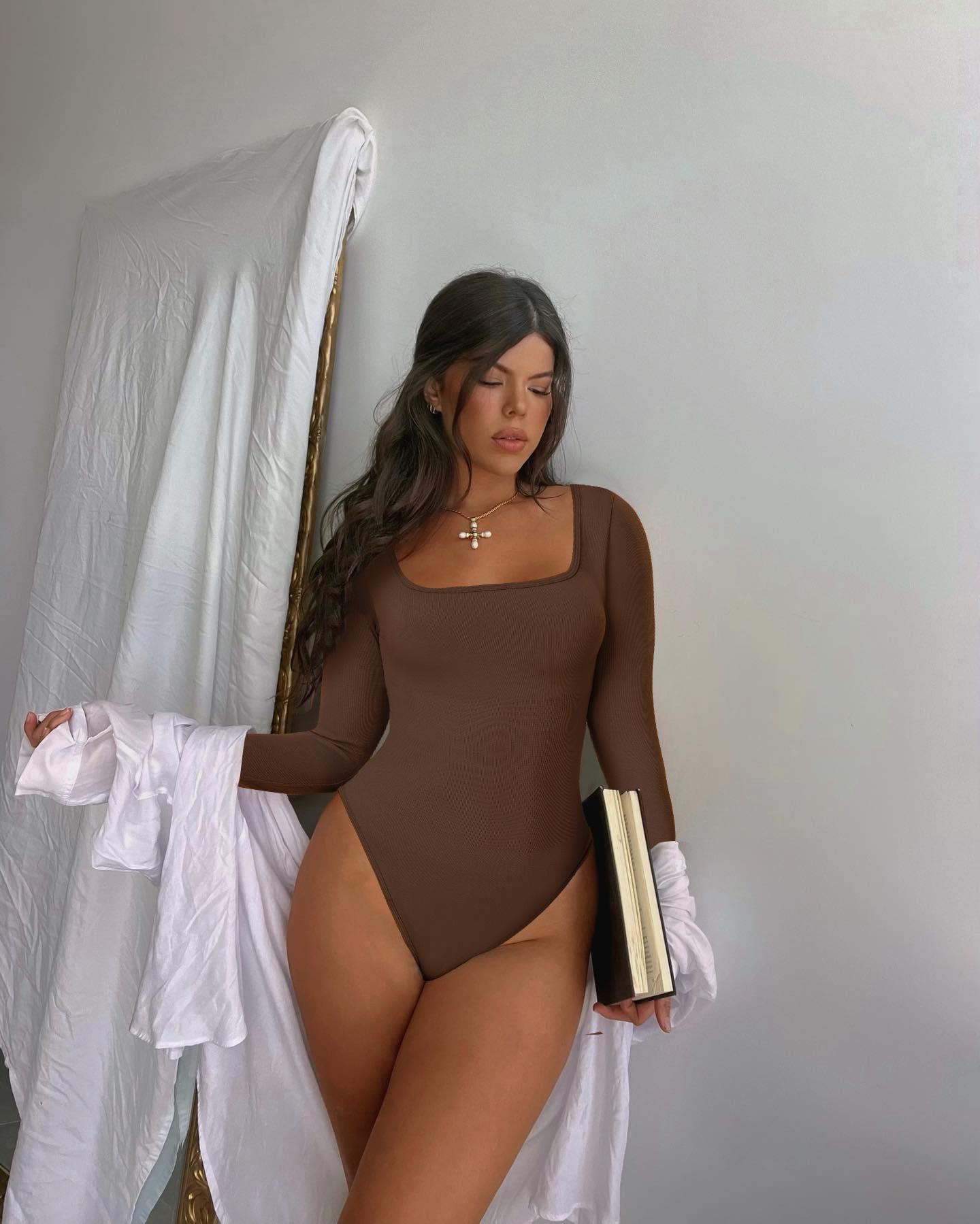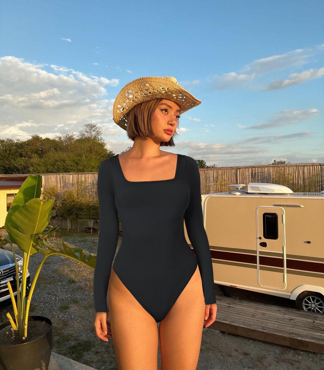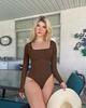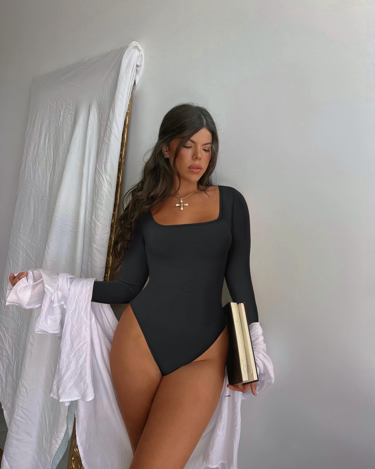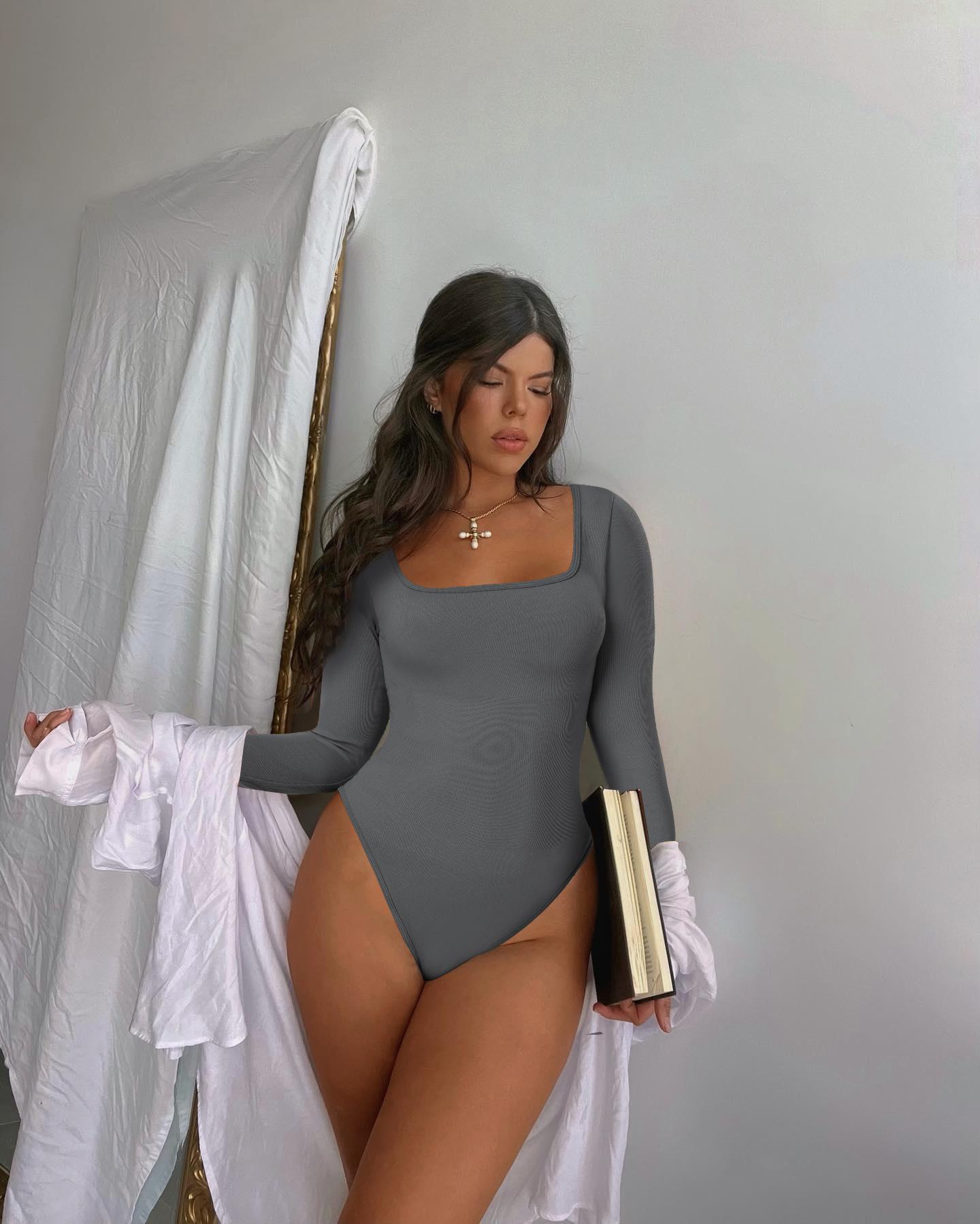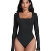 2025 Otoño e Invierno Ropa de Yoga sin Costuras de Manga Larga Deportiva de Alta Elasticidad Ajustada con Hilo Cuello Cuadrado Moldeadora de Cintura Mono