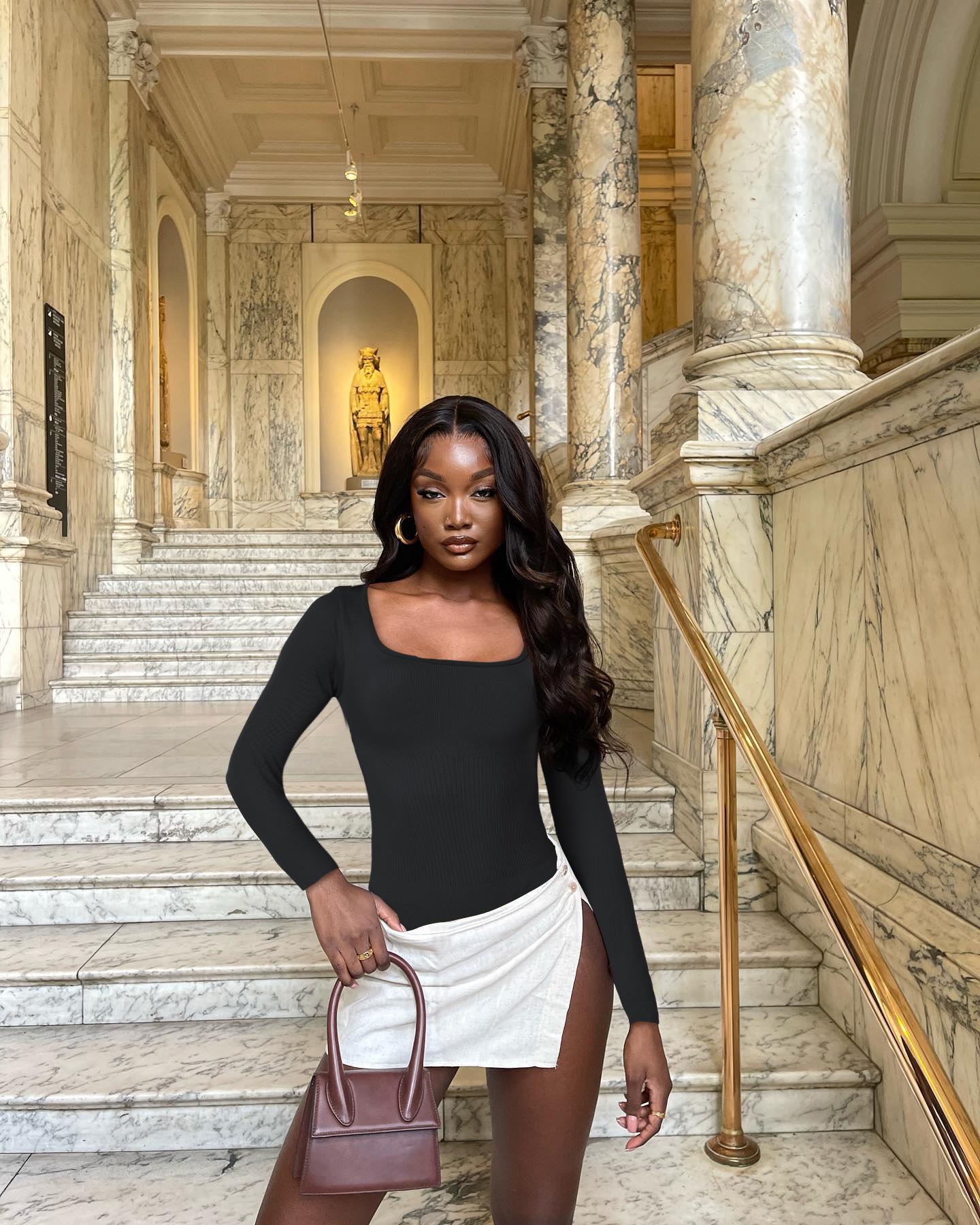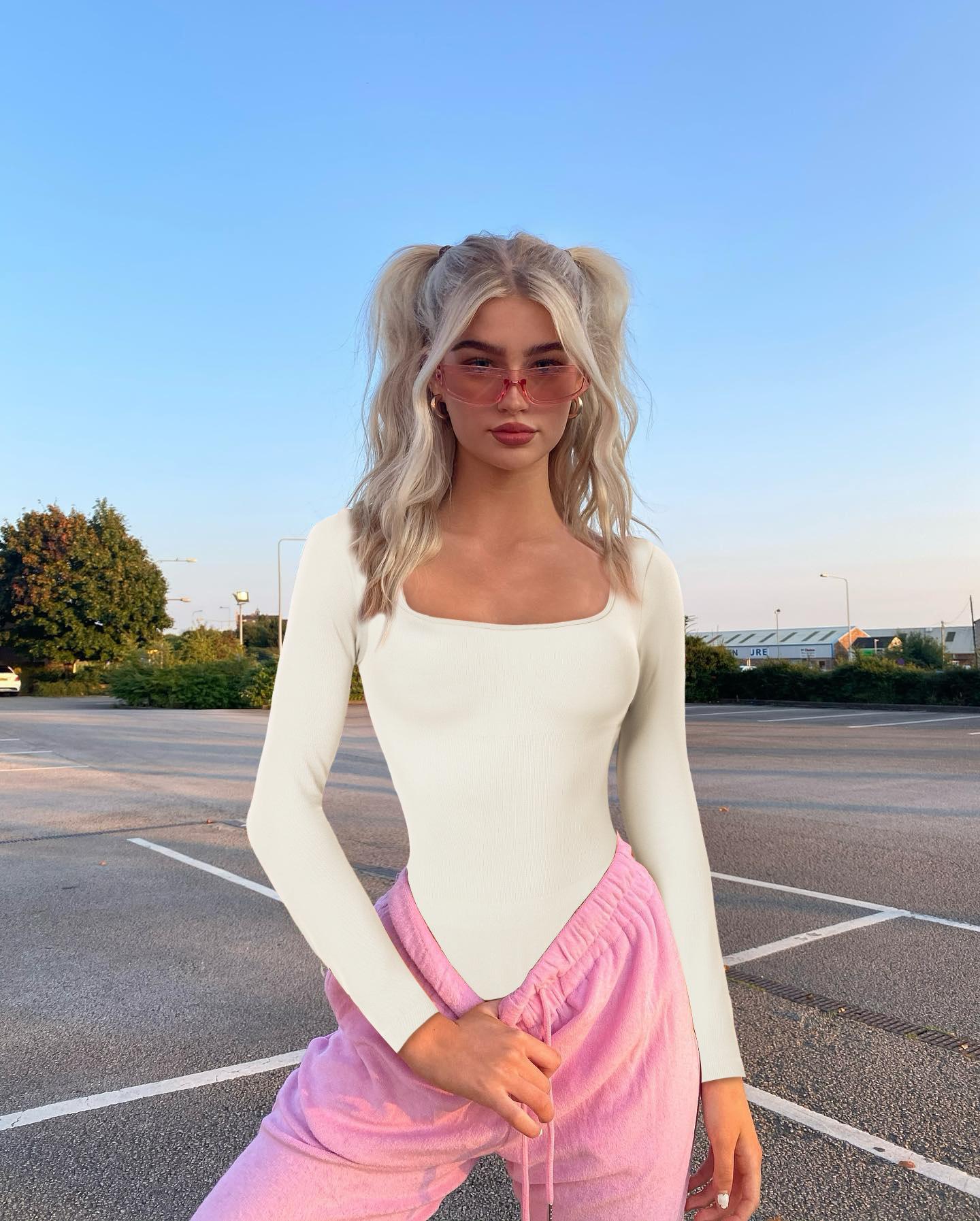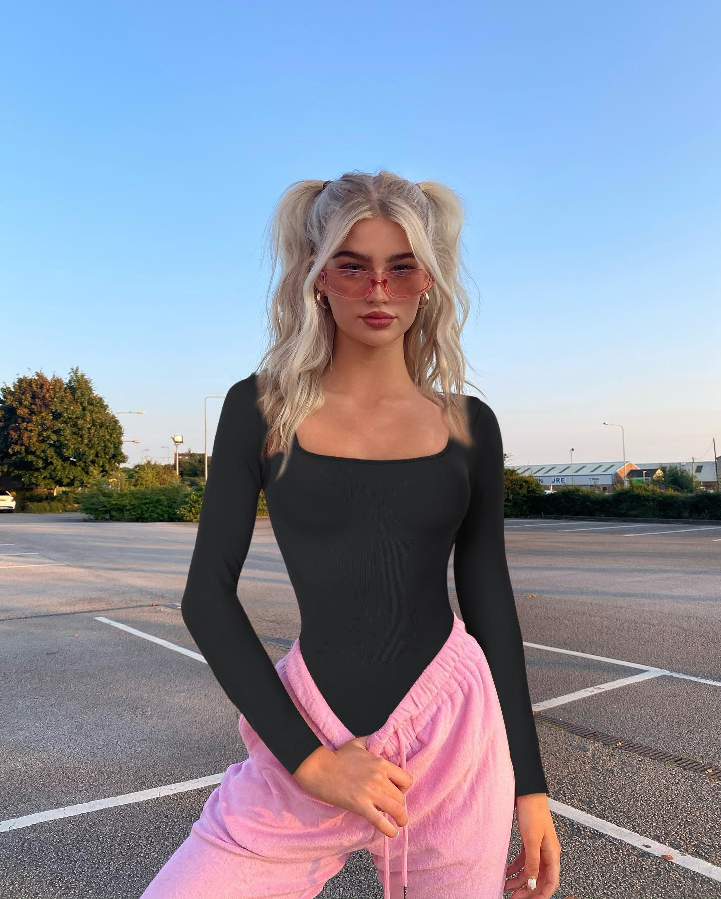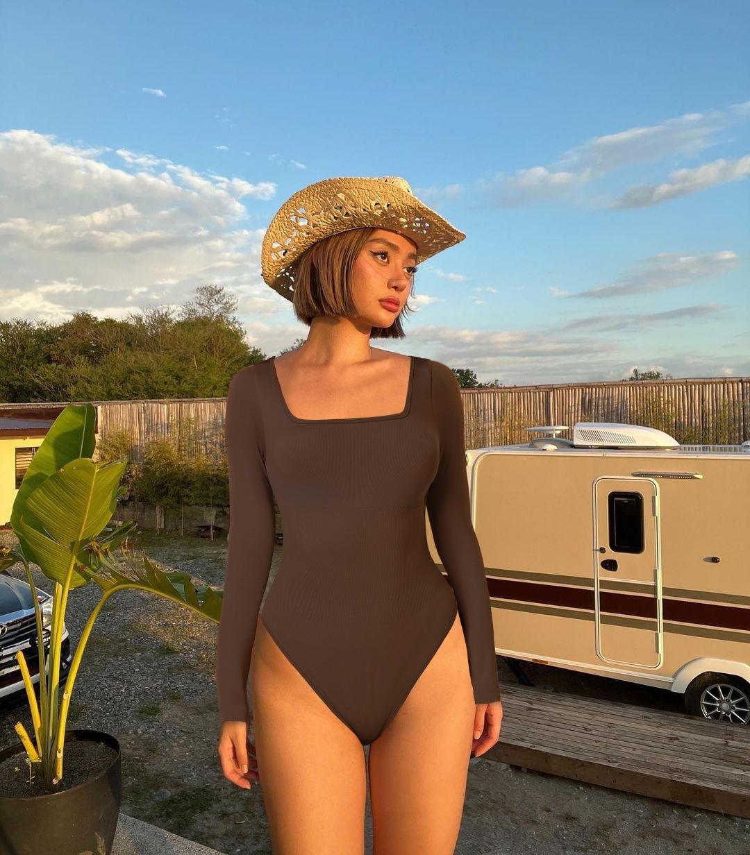 2025 Otoño e Invierno Ropa de Yoga sin Costuras de Manga Larga Deportiva de Alta Elasticidad Ajustada con Hilo Cuello Cuadrado Moldeadora de Cintura Mono