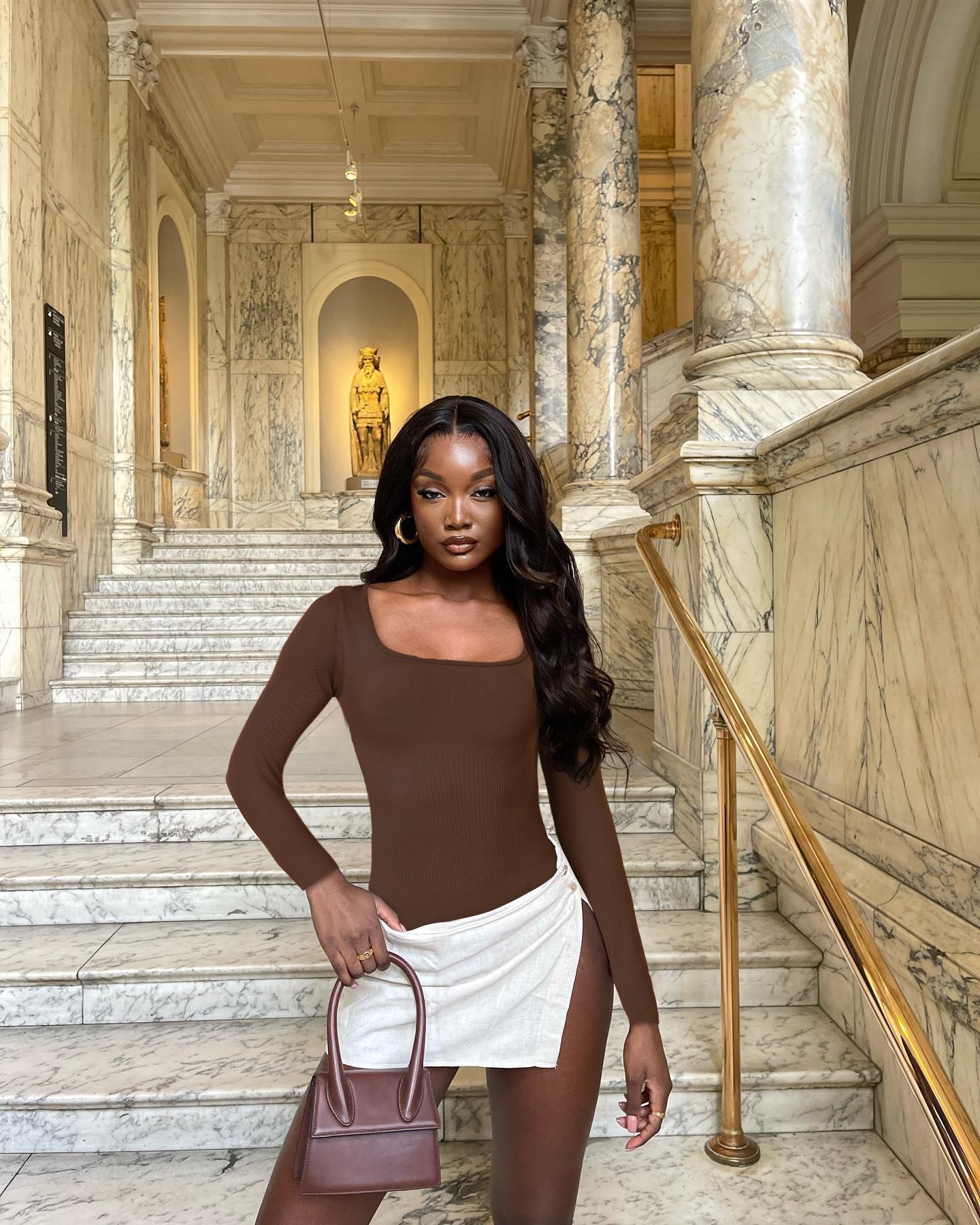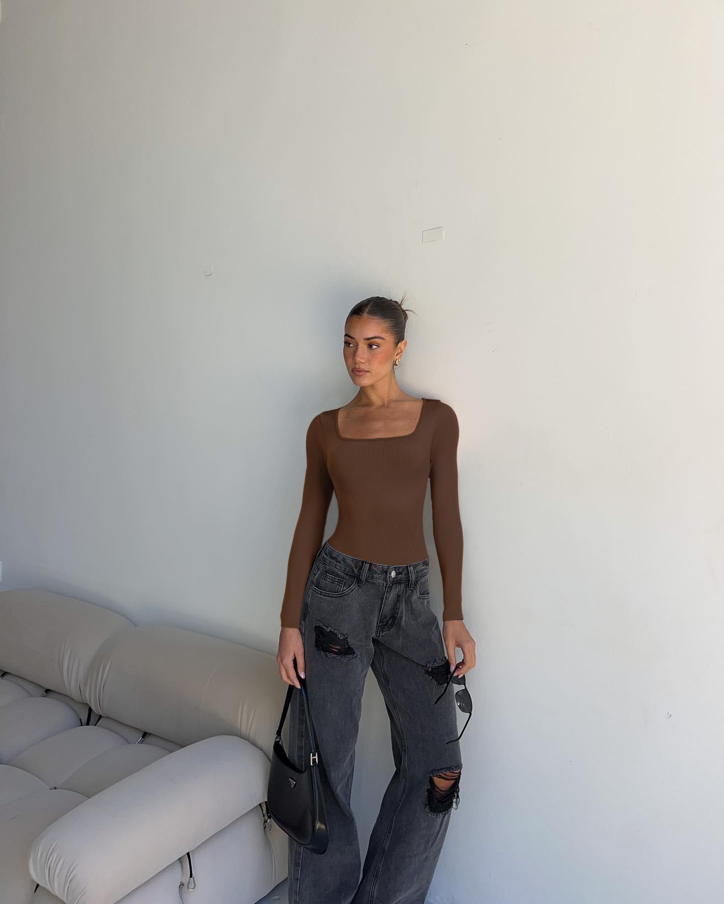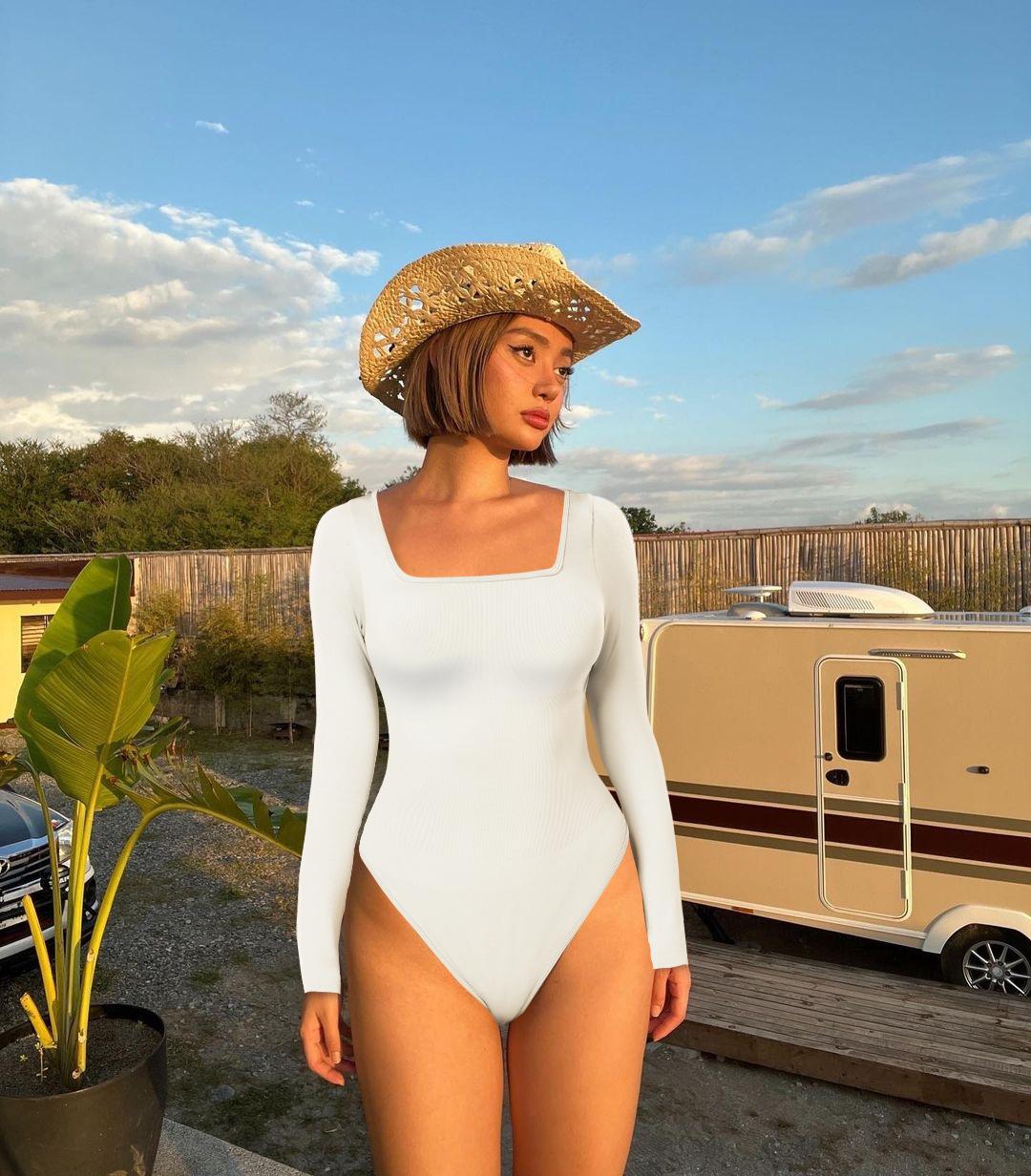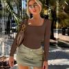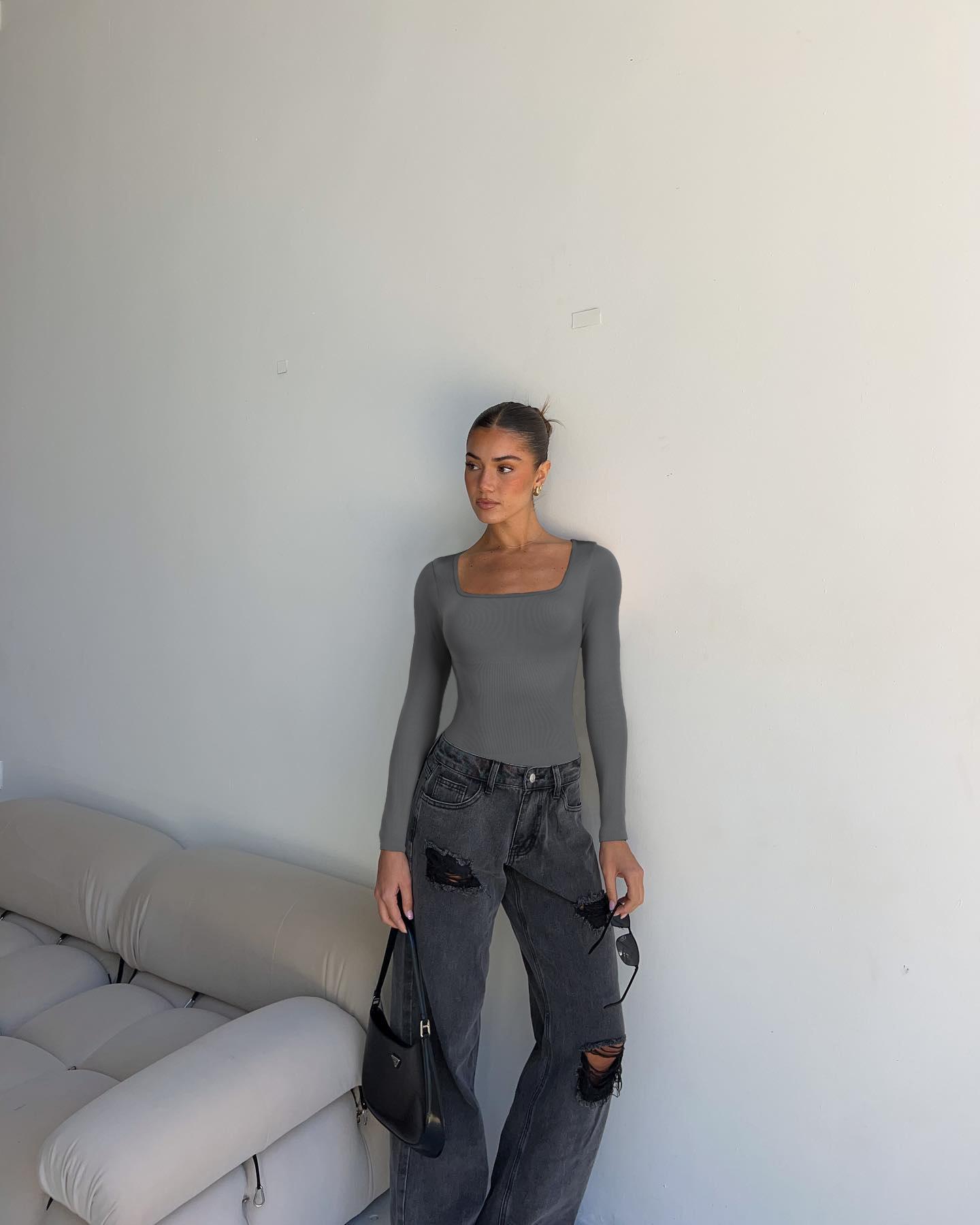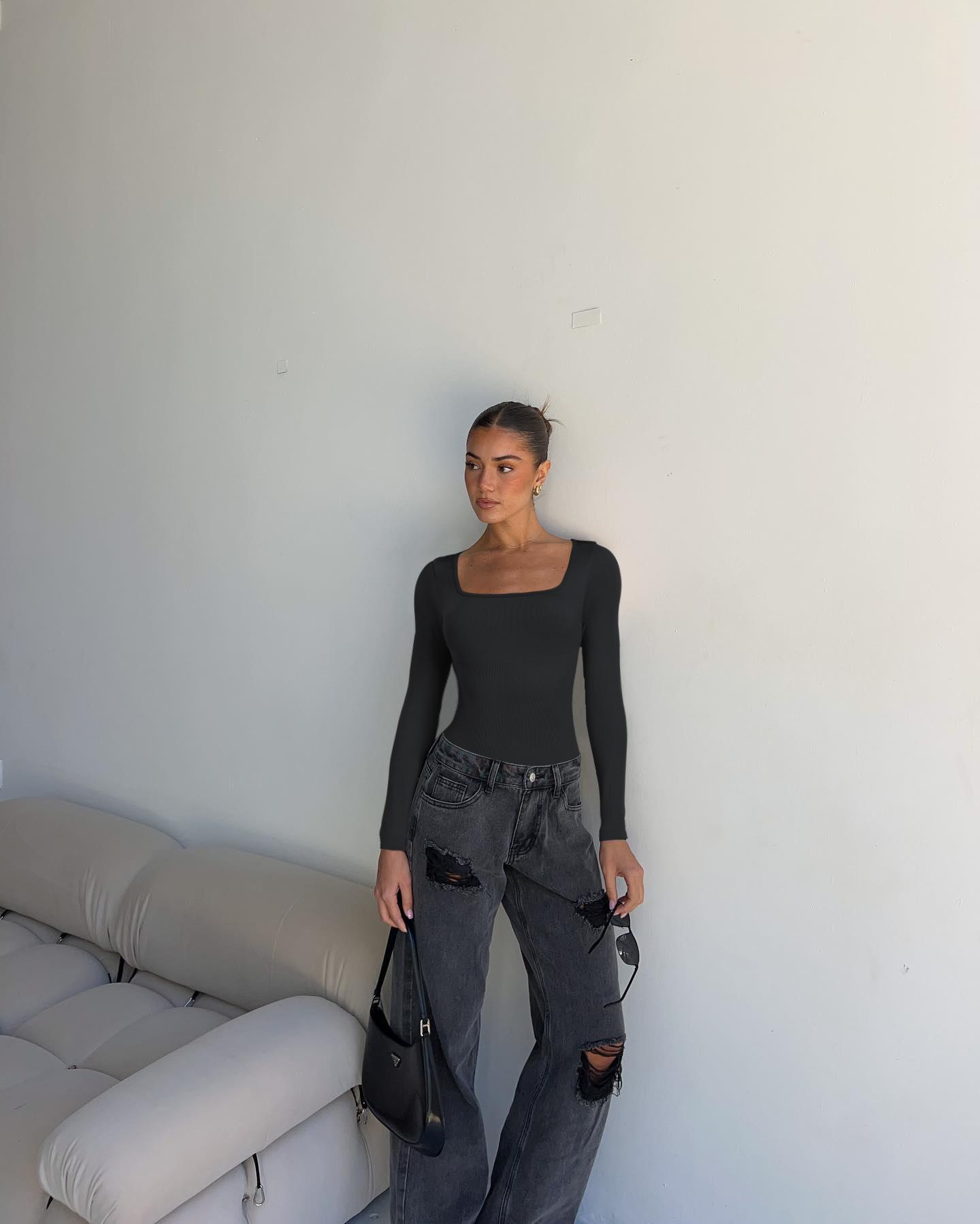 2025 Otoño e Invierno Ropa de Yoga sin Costuras de Manga Larga Deportiva de Alta Elasticidad Ajustada con Hilo Cuello Cuadrado Moldeadora de Cintura Mono