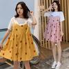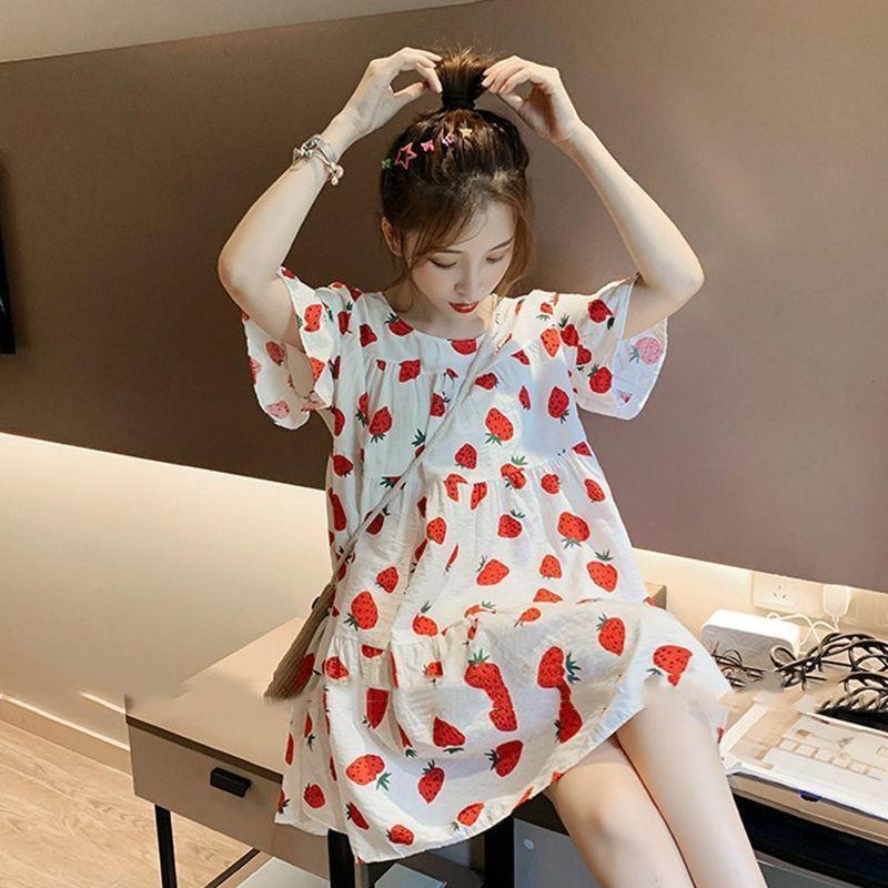 Vestido de maternidad de color floral, vestido de verano coreano frambuesa de manga corta suelto para mujeres embarazadas coreanas, vestido de verano de manga corta para mujeres