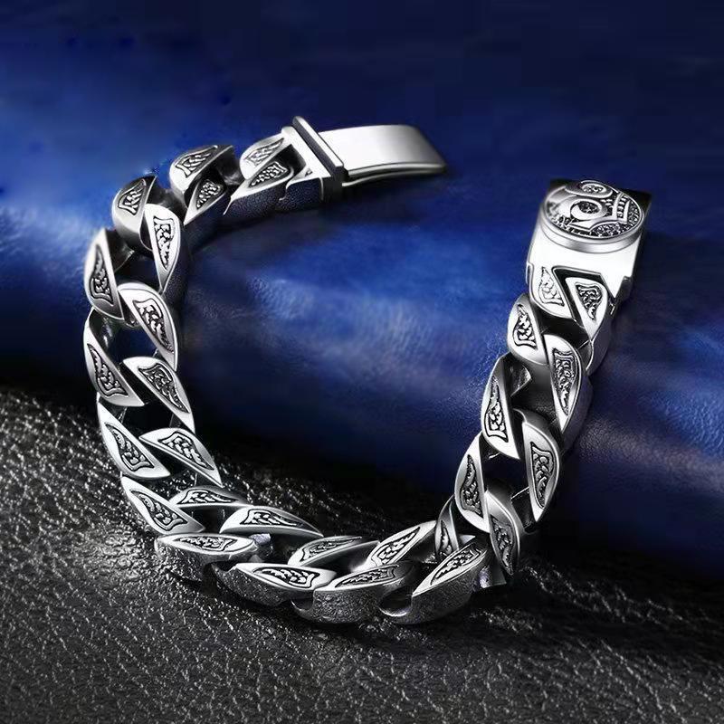 Pulsera retro para hombre plateada personalidad moda amigo de la máquina tótem Harley pulsera de muñeca dominadora ruda