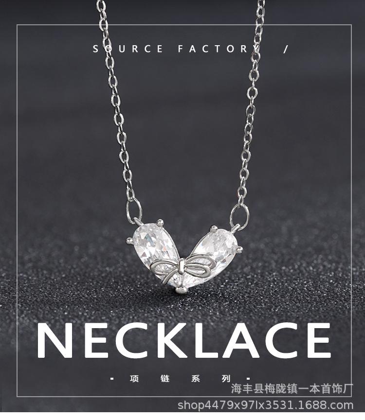 Un collar de amor para mujer, ligero, de lujo, con diseño de nicho, lazo de circonita, cadena de clavícula de acero de titanio, temperamento simple, celebridad en línea.