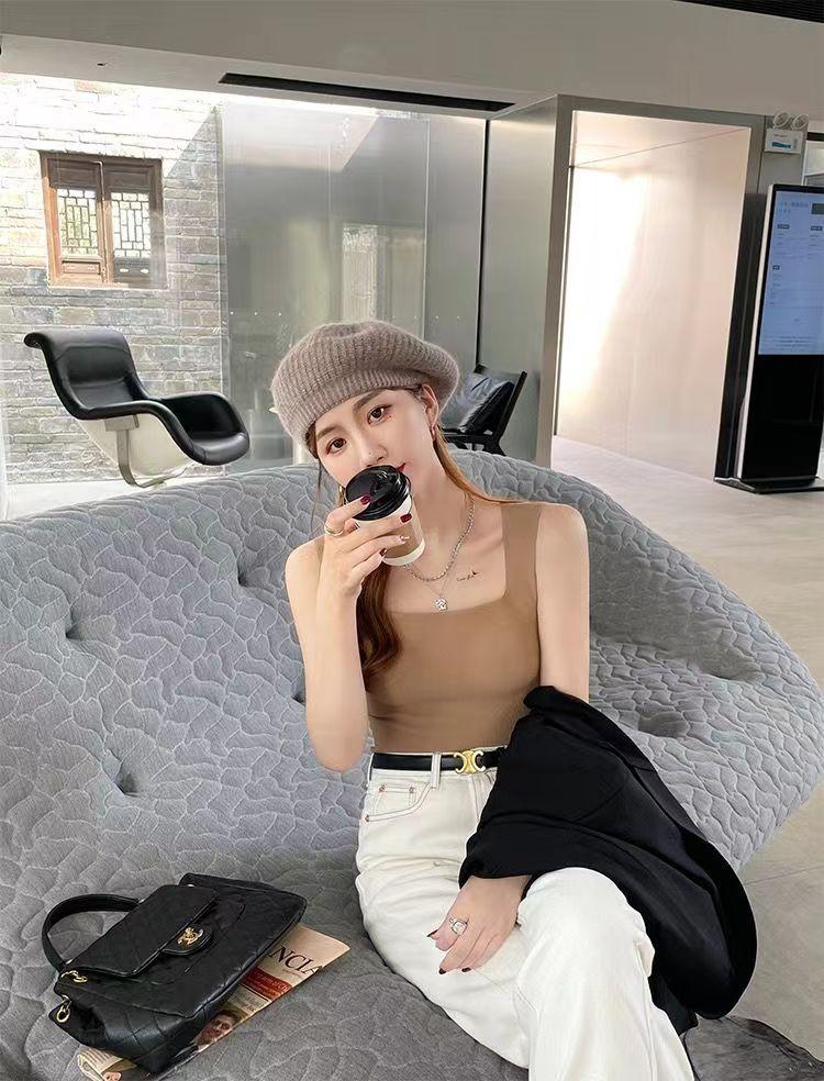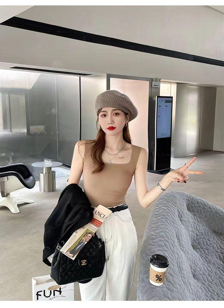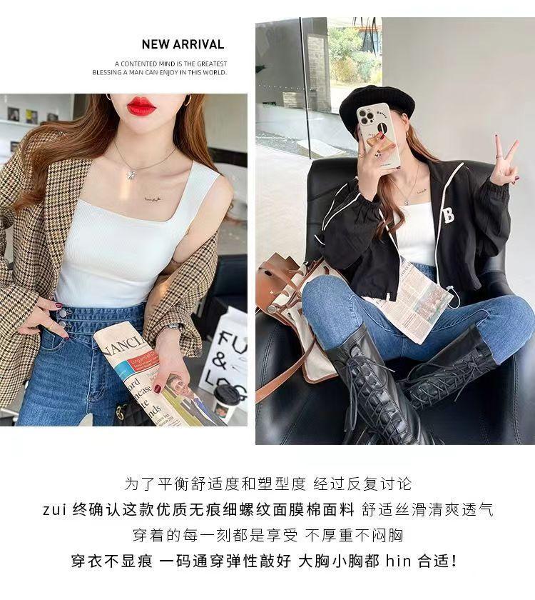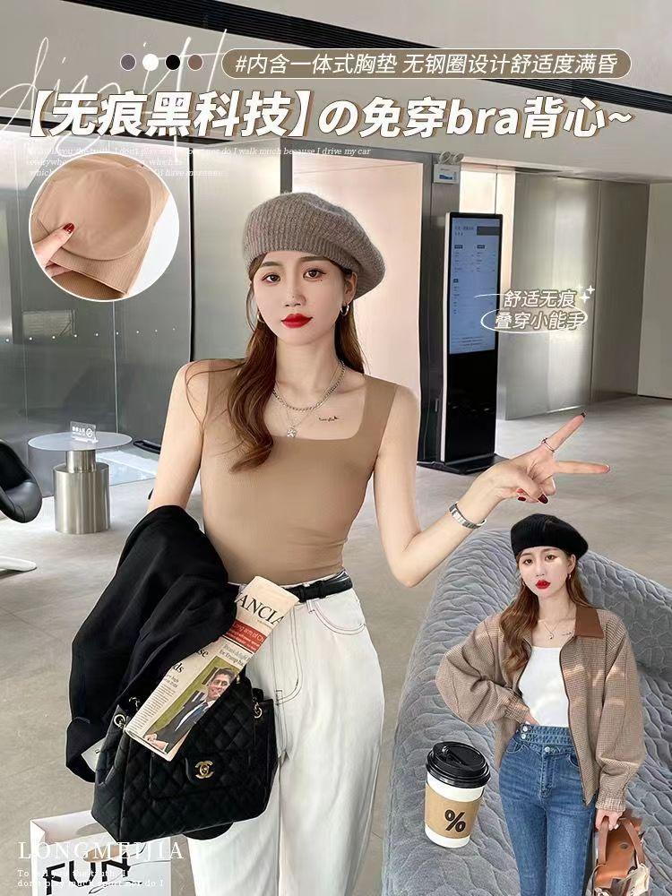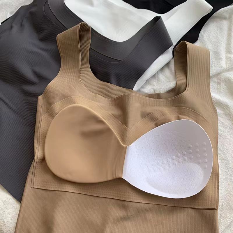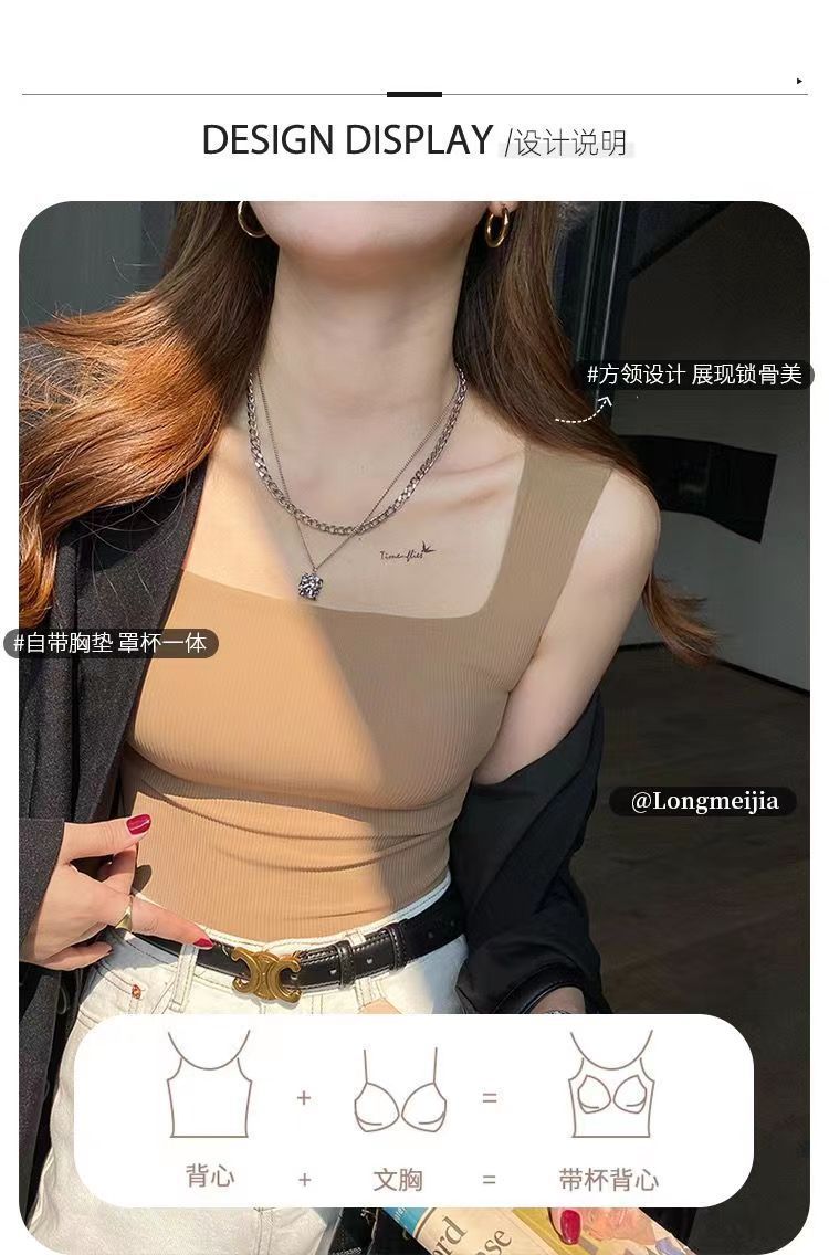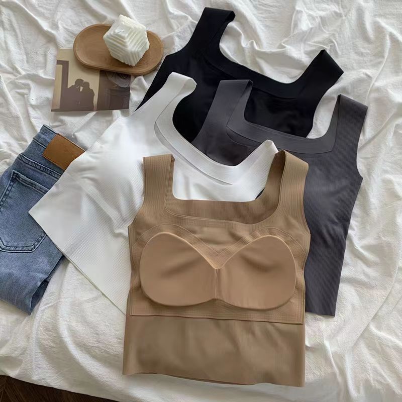 Verano Hielo Seda Sin Costuras Chaleco Cuello Cuadrado Mujer Rosca Copa Fija Integrada Almohadilla Pecho Espalda Hermosa Ropa Interior Chica Picante Mujer