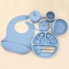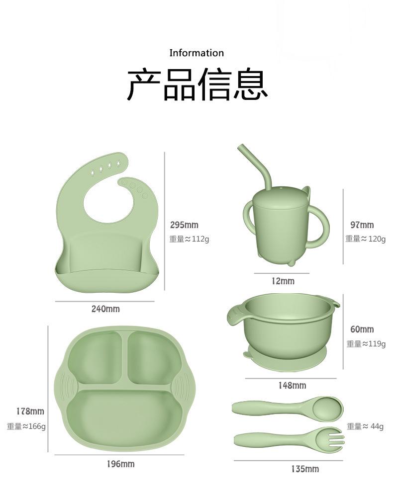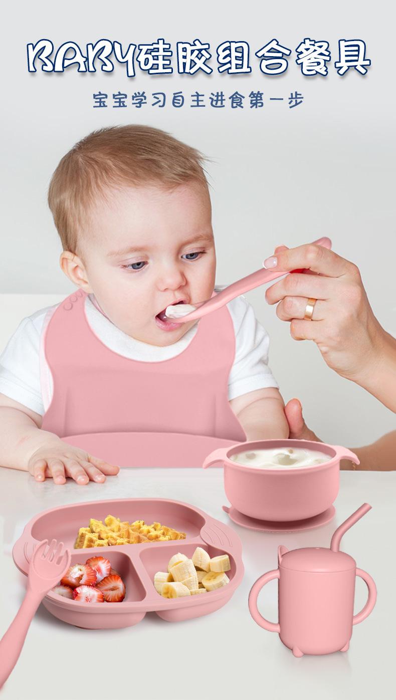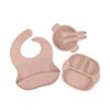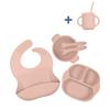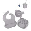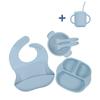 Nota: Juego de 5 piezas: plato llano + cuenco + tenedor + babero