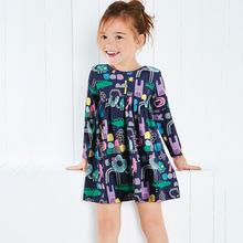 | Otoño nueva ropa para niños falda para niños estilo europeo y americano vestido de manga larga para niñas algodón tejido cuello redondo bordado de dibujos animados vestido de princesa |
