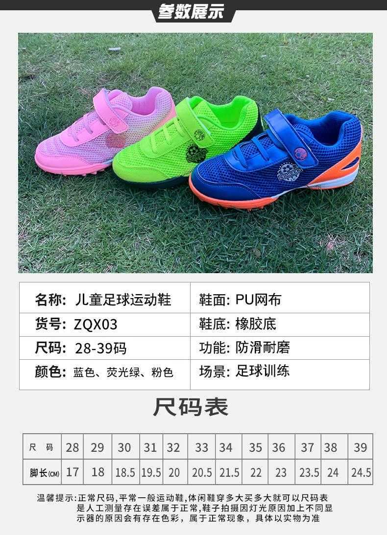 Zapatos de fútbol para niños y niñas TF uñas rotas verano transpirable Velcro entrenamiento competición zapatos deportivos para estudiantes de primaria y secundaria