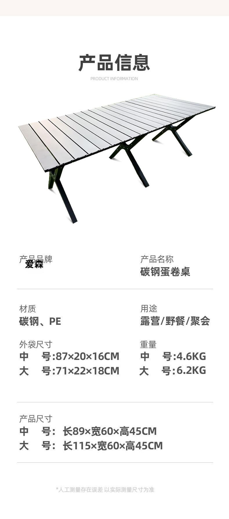 Una fábrica en stock aleación de acero al carbono mesa de rollo de huevo para exteriores ultraligera camping mesa plegable y silla equipo de camping portátil