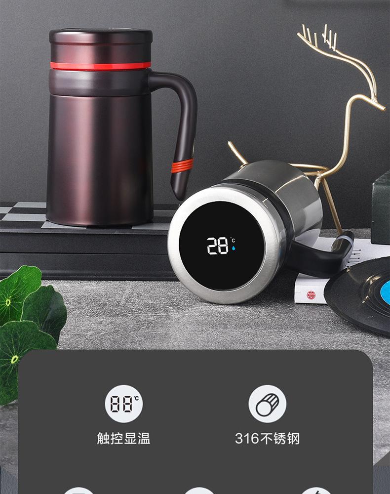 Nueva Taza Termo Inteligente Sensible a la Temperatura Taza de Acero Inoxidable 304 Creativa de Gran Capacidad con Asa para Negocios Taza para Oficina
