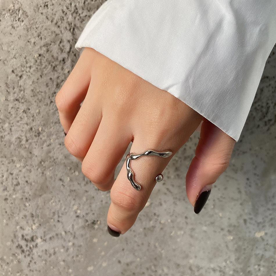 Anillo de Personalidad de Plata S925 Estilo Coreano para Mujer Moda Retro Sentido Erróneo Textura Cruzada Anillo Abierto Creativo Anillo de Dedo Moderno