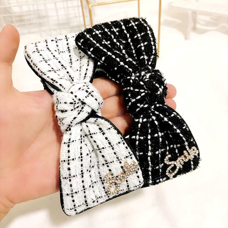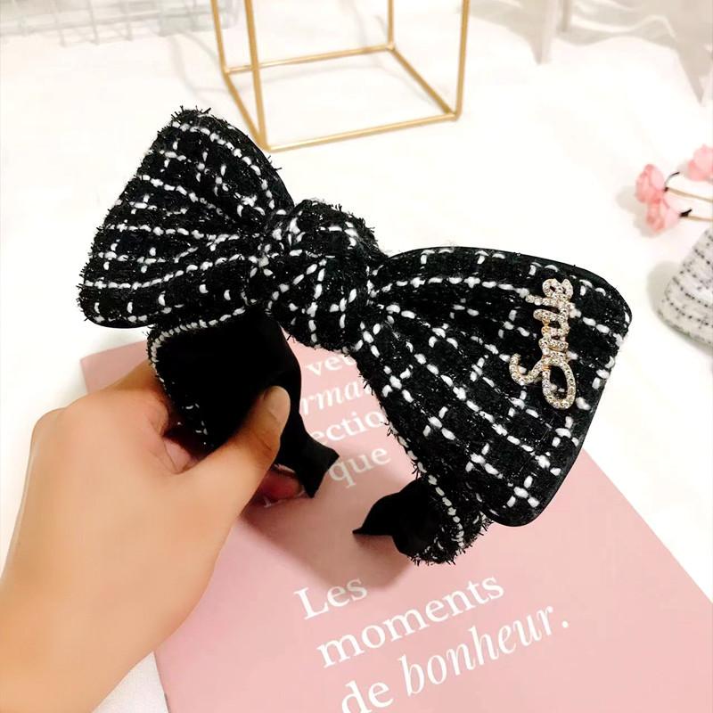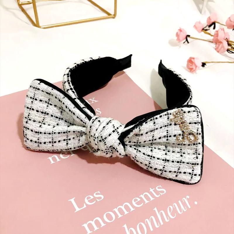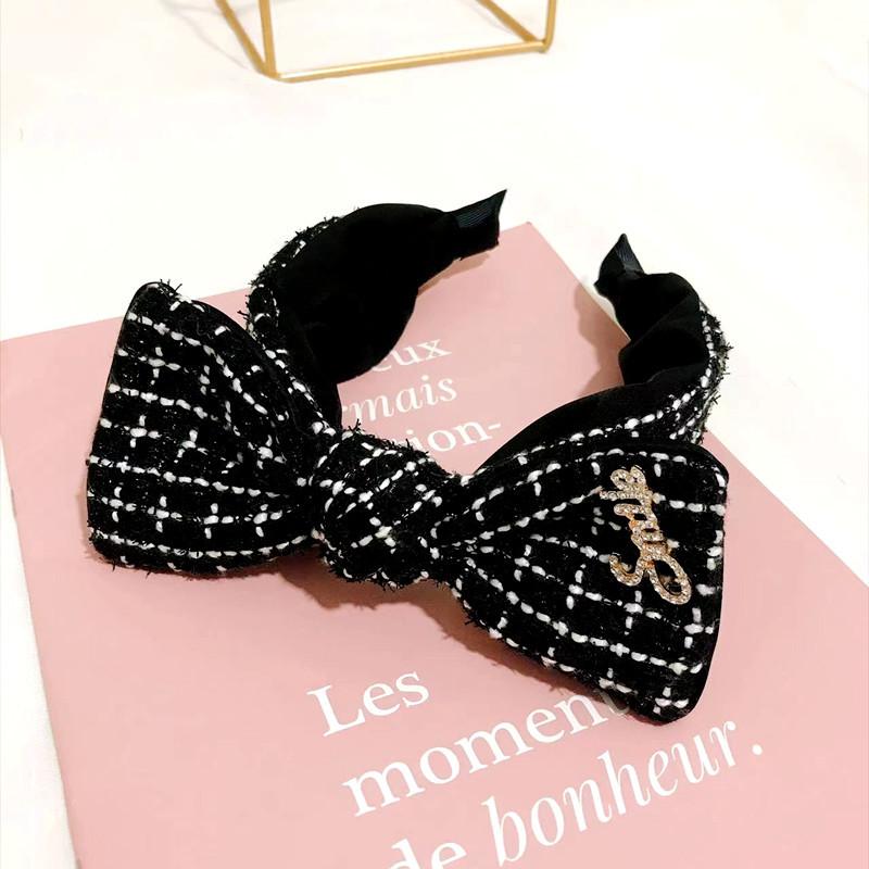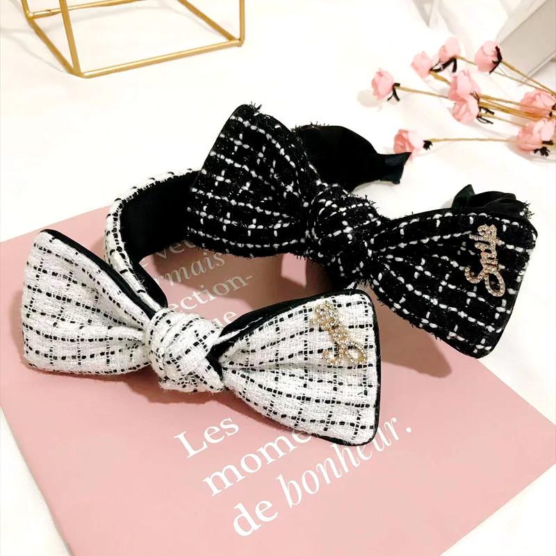 Diadema popular de estilo coreano de otoño e invierno 2023, lazo de estilo japonés y coreano para mujer, accesorios para el cabello a cuadros, diadema con diamantes de imitación estilo Chanel, horquilla