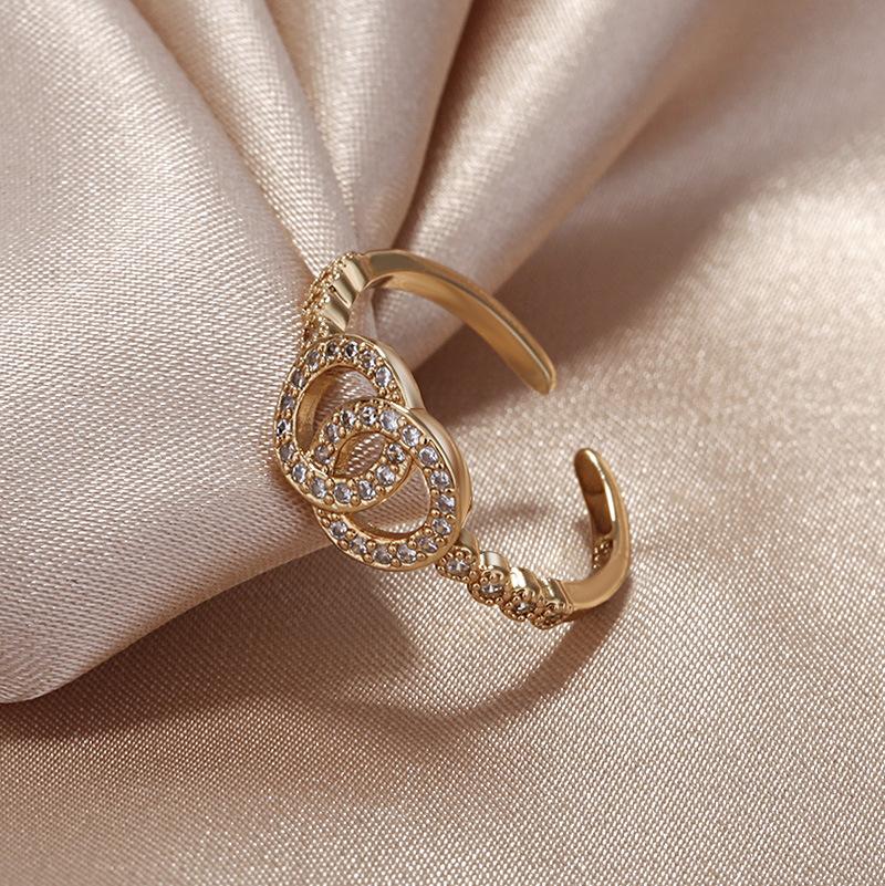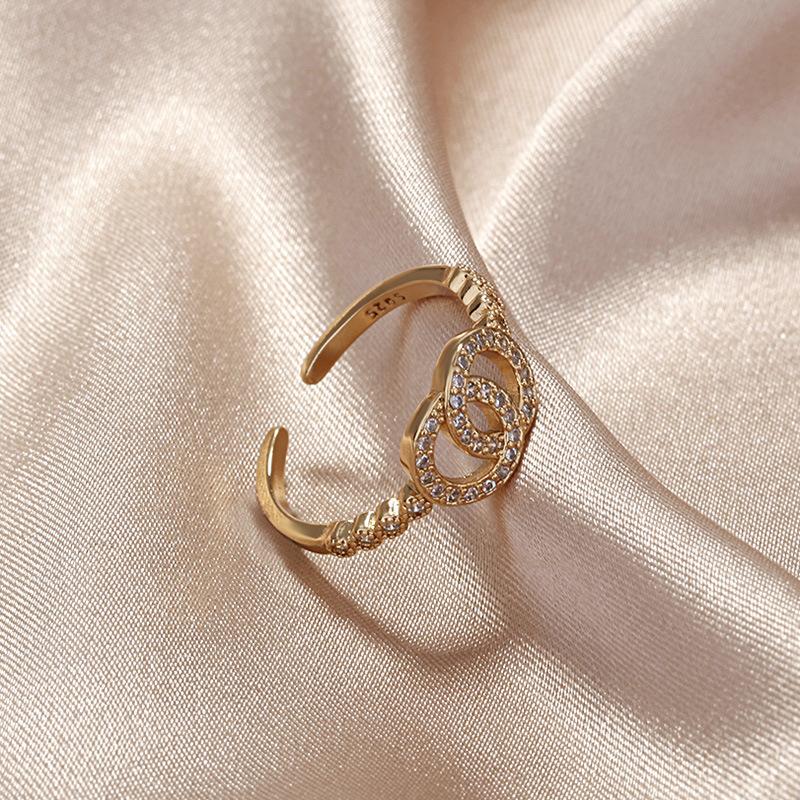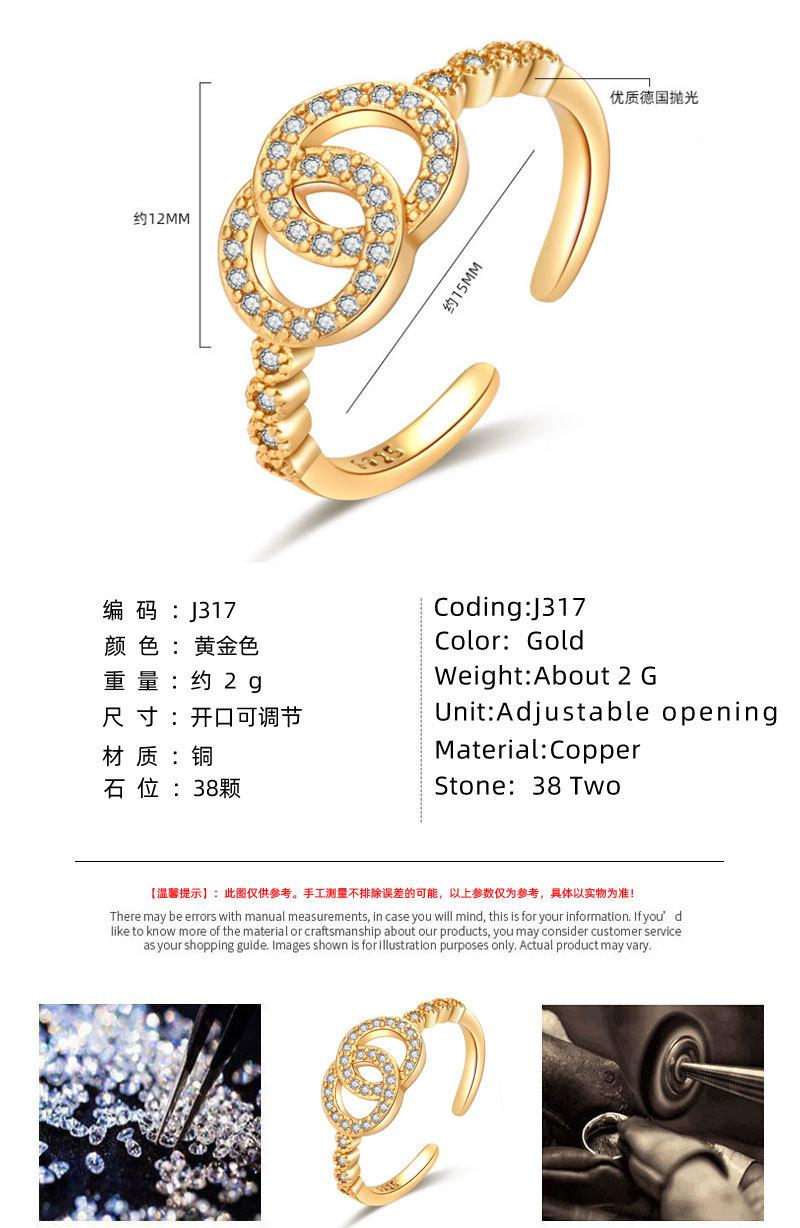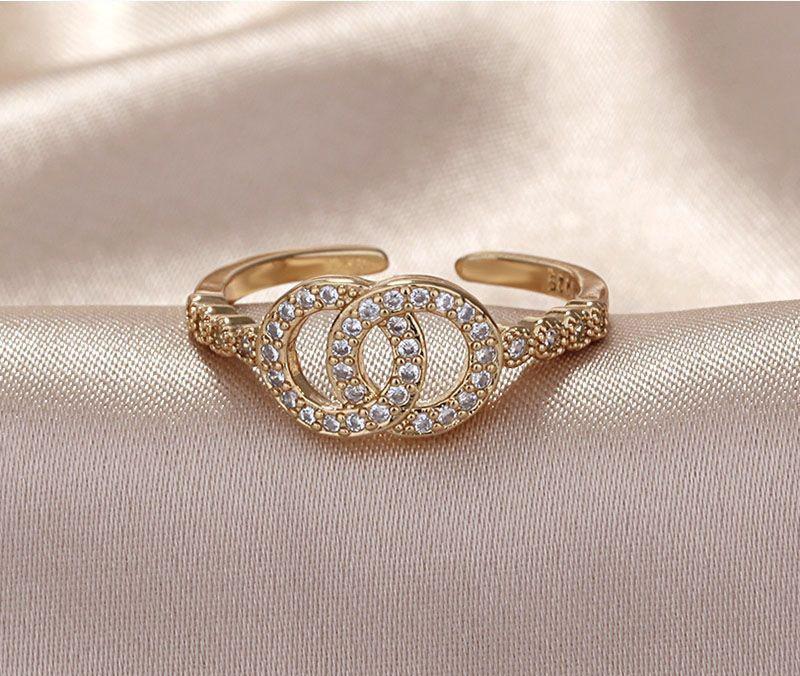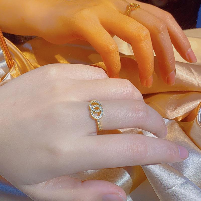 Moda europea y americana nuevo anillo chapado en oro amarillo con hebilla de anillo anillo de mujer temperamento con microdiamantes incrustados anillo de celebridad de Internet ins para mujer