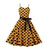 Ropa Europea y Americana Vestido de Lunares, Falda Larga Retro con Dobladillo Grande con Cordones, Falda con Tirantes, Envío Directo de Una Pieza, Descuento por Cantidad