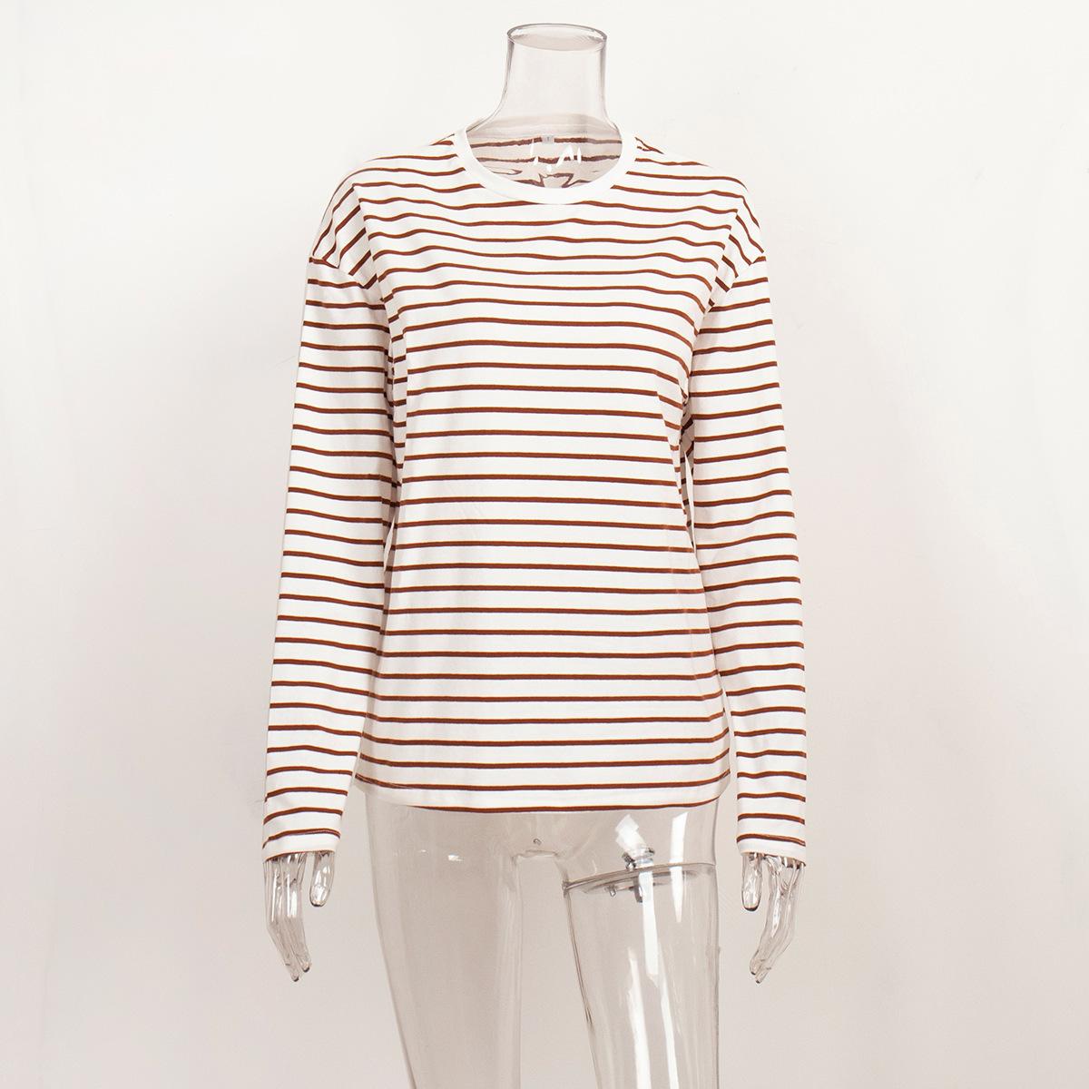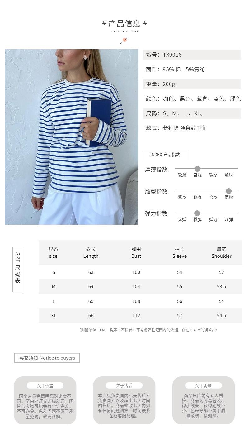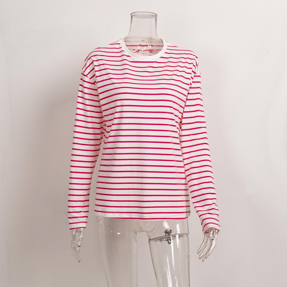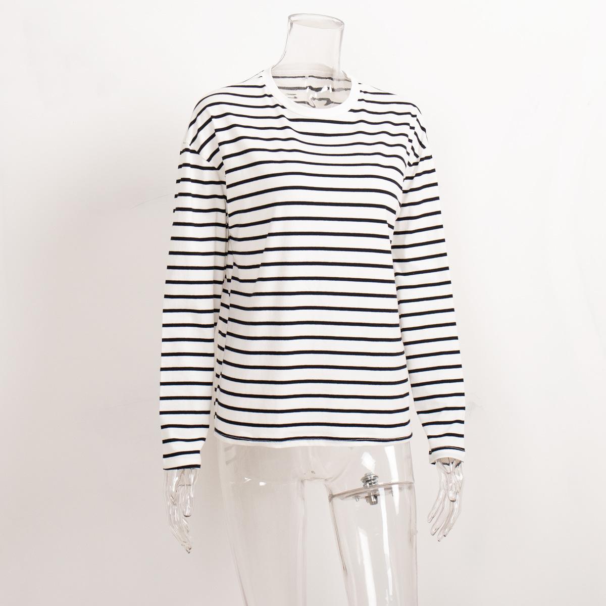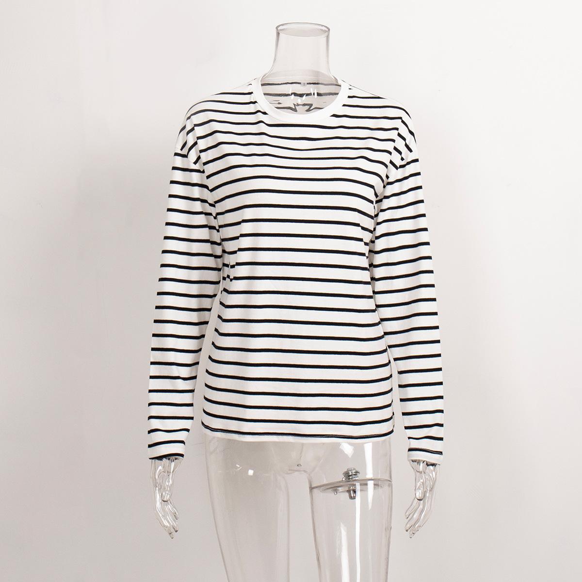 Camiseta de Rayas de Manga Larga Transfronteriza Moda Europea y Americana Primavera 2025 Moderna Versátil Casual Cuello Redondo Algodón Puro Camiseta de Rayas