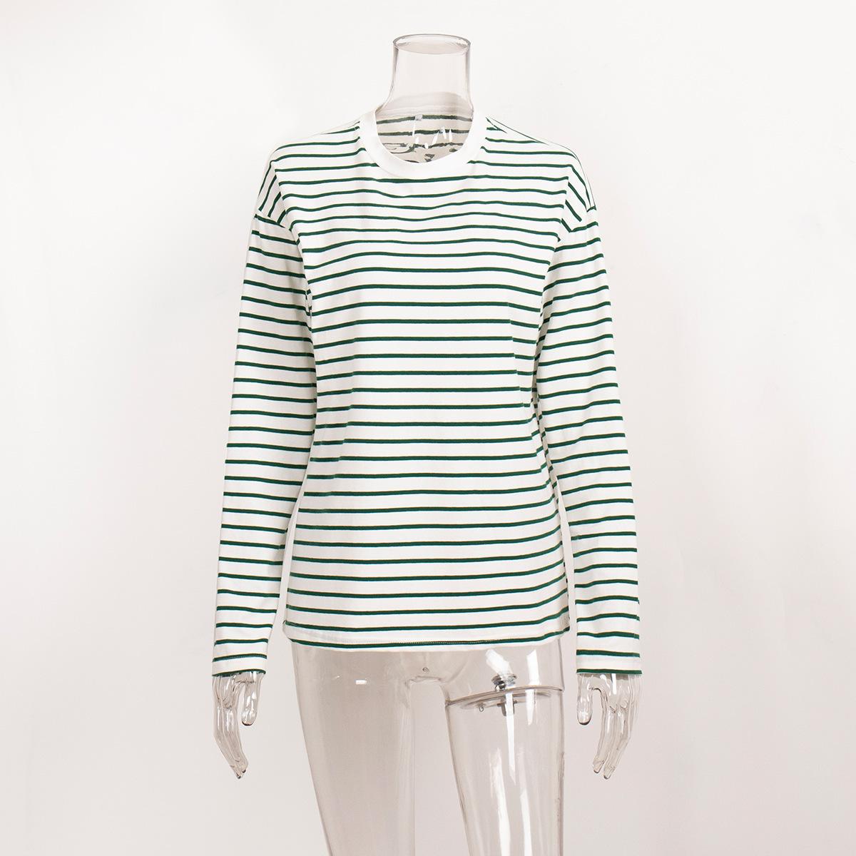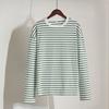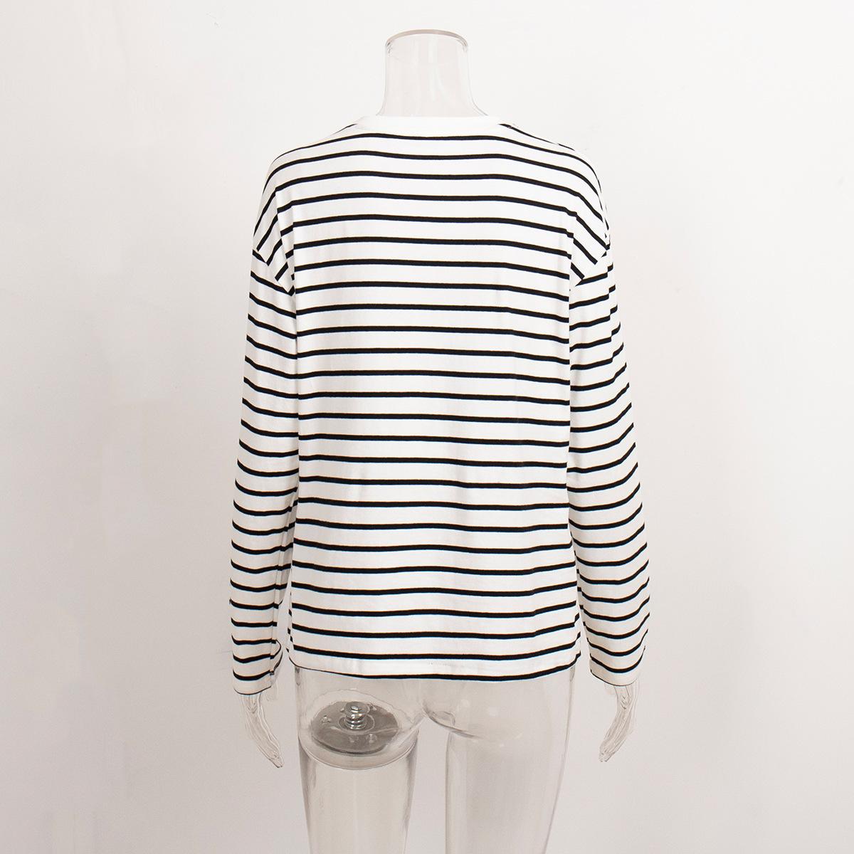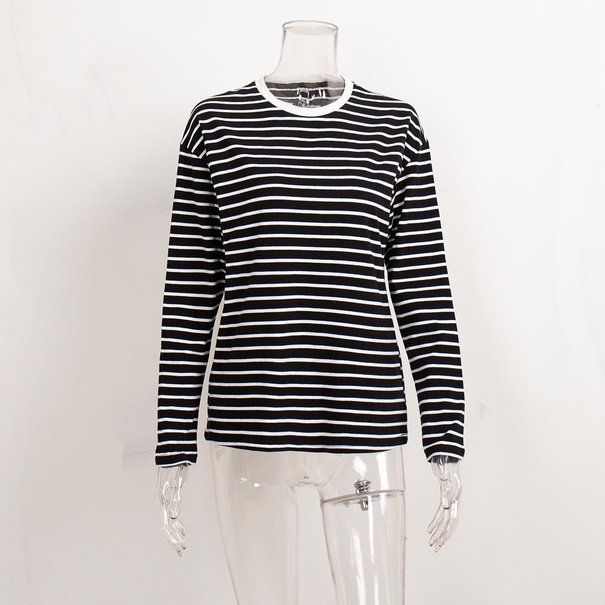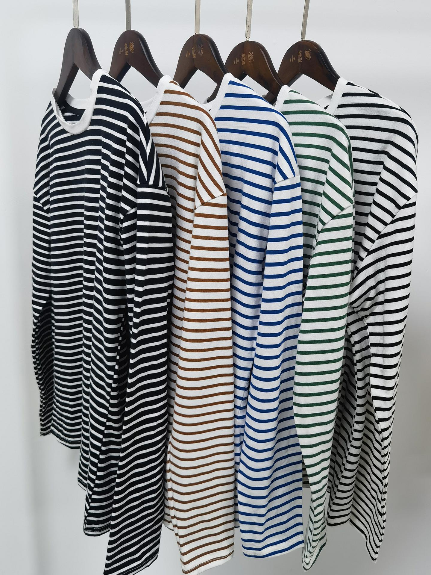 Camiseta de Rayas de Manga Larga Transfronteriza Moda Europea y Americana Primavera 2025 Moderna Versátil Casual Cuello Redondo Algodón Puro Camiseta de Rayas