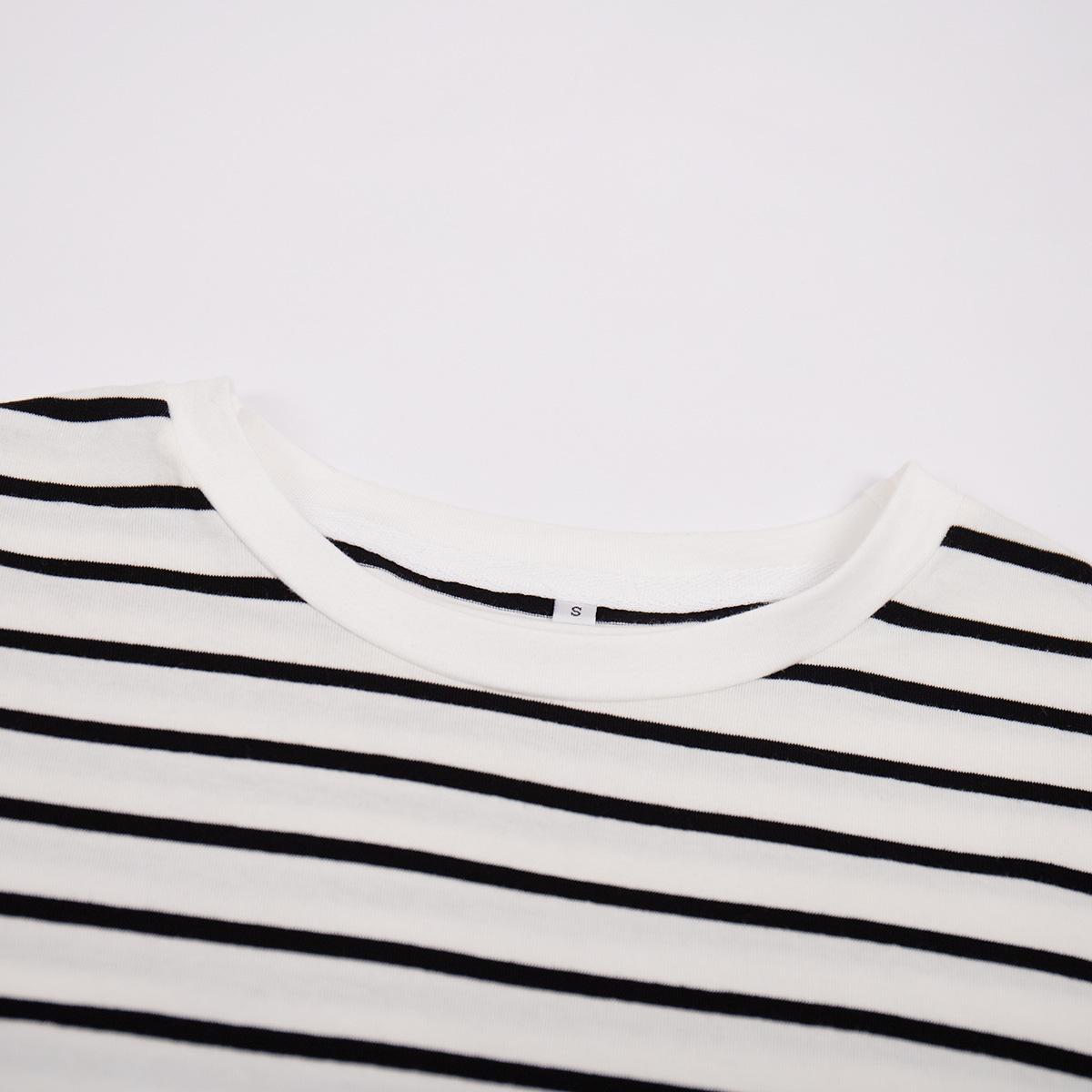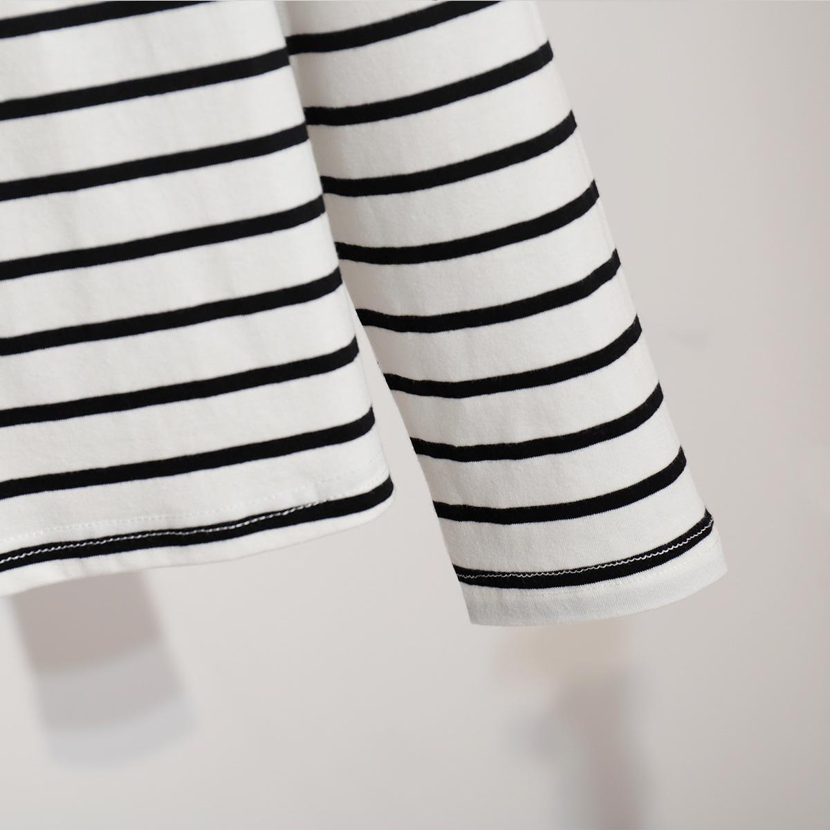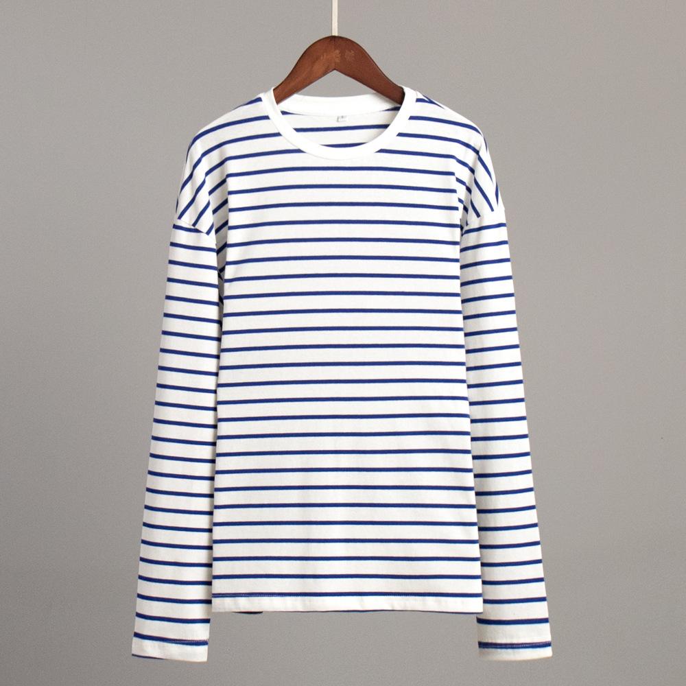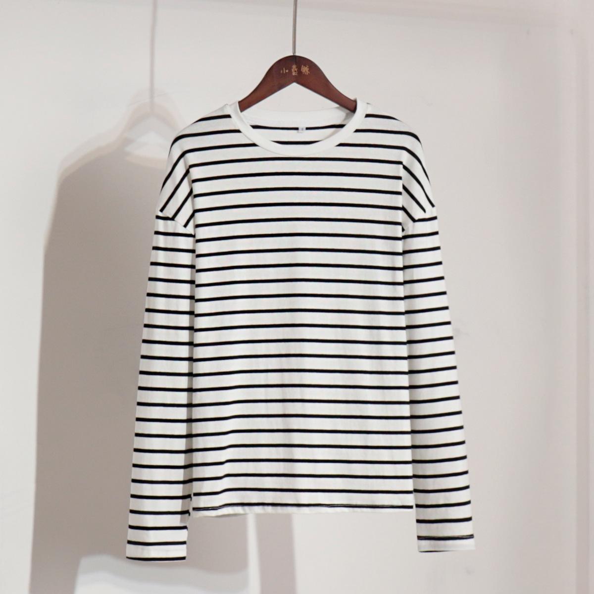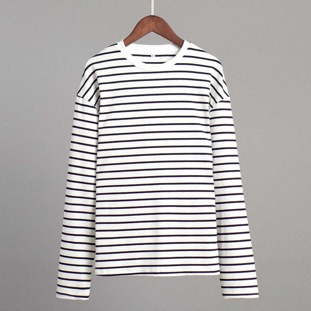 Camiseta de Rayas de Manga Larga Transfronteriza Moda Europea y Americana Primavera 2025 Moderna Versátil Casual Cuello Redondo Algodón Puro Camiseta de Rayas