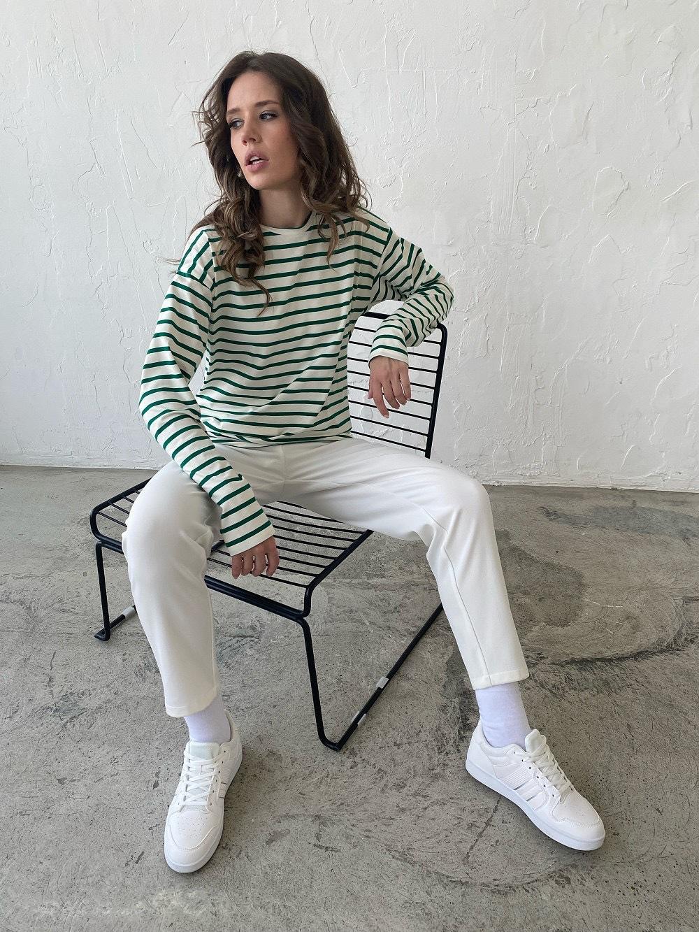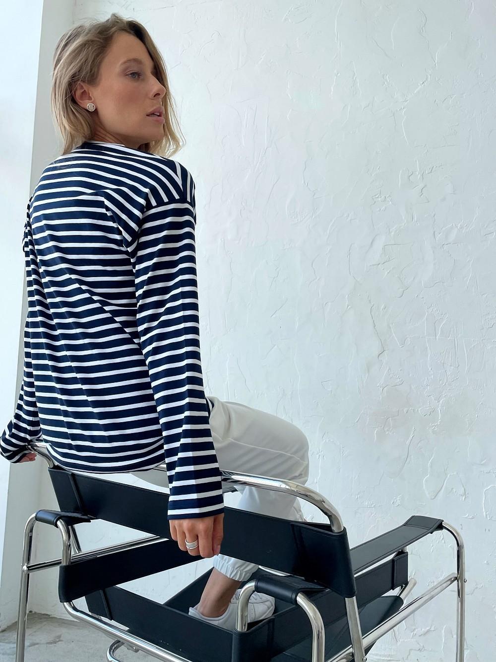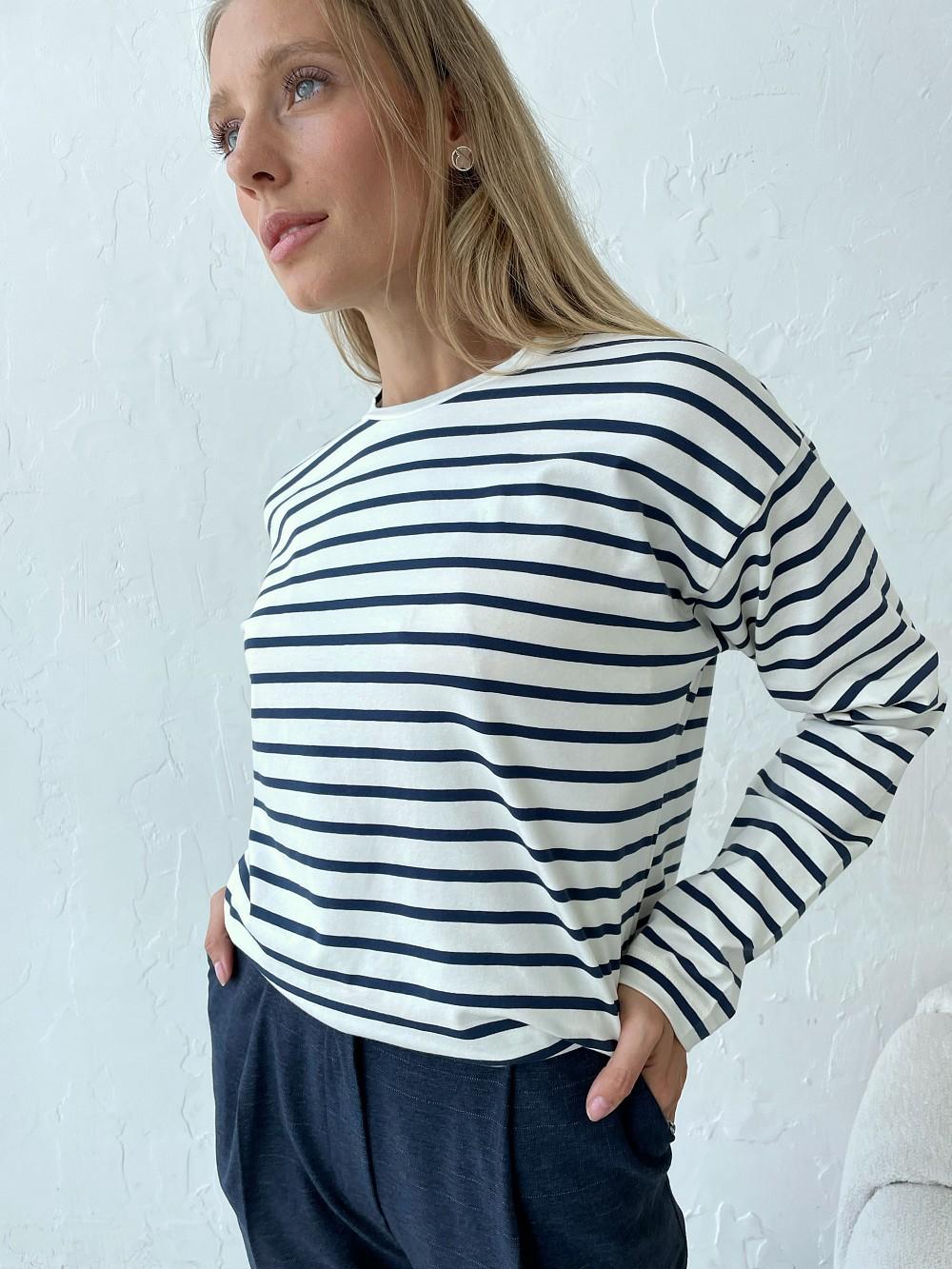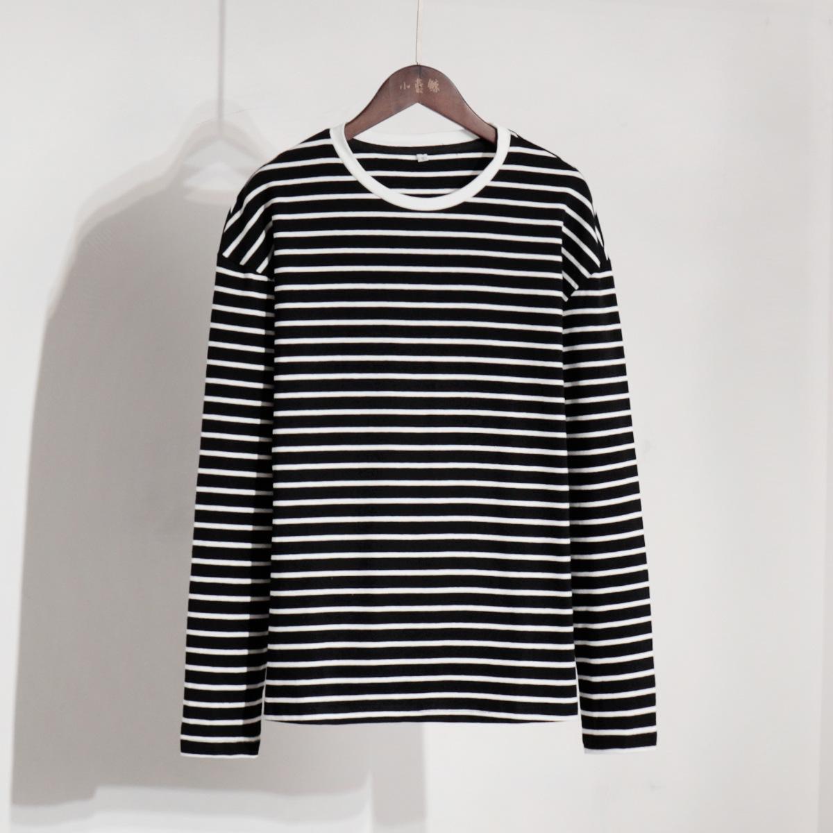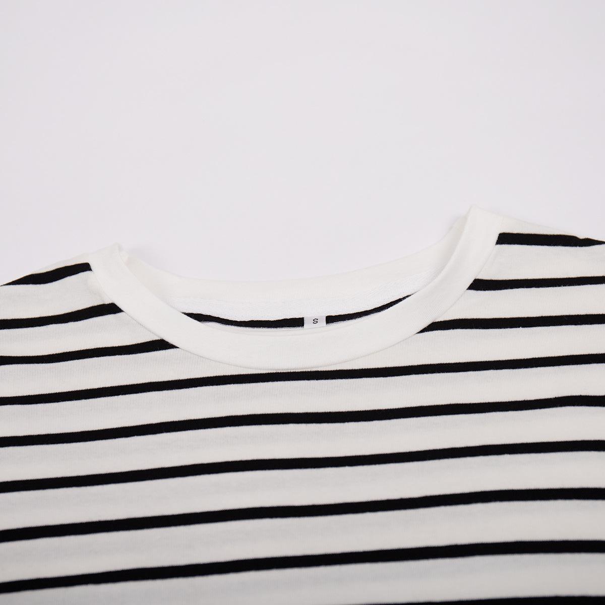 Camiseta de Rayas de Manga Larga Transfronteriza Moda Europea y Americana Primavera 2025 Moderna Versátil Casual Cuello Redondo Algodón Puro Camiseta de Rayas