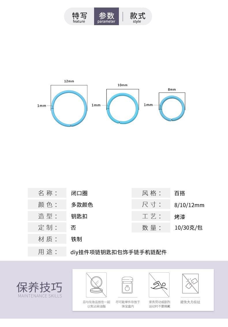 Anillo de Hierro de Color de 8/10/12 mm Anillo Abierto Cerrado Accesorios DIY Hechos a Mano Materiales Auxiliares Llavero Venta Caliente Transfronteriza