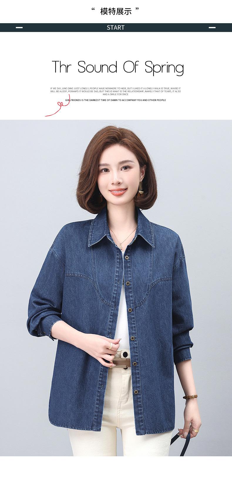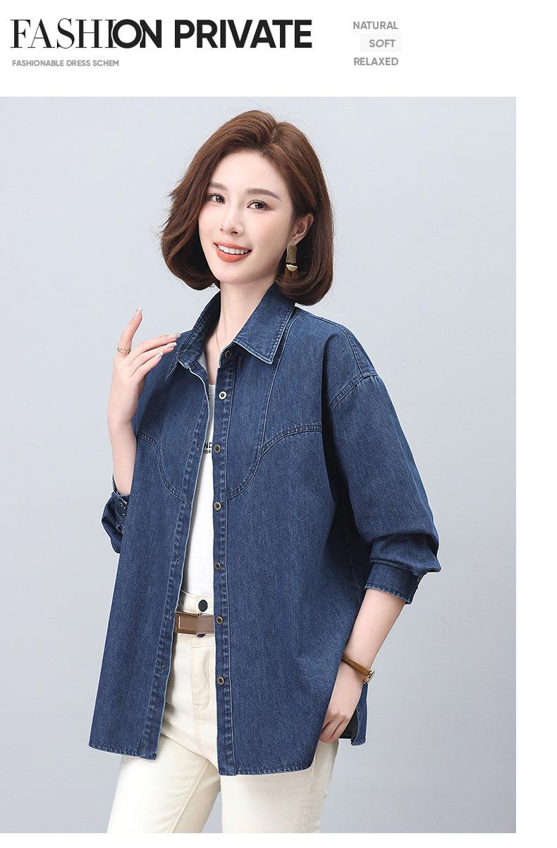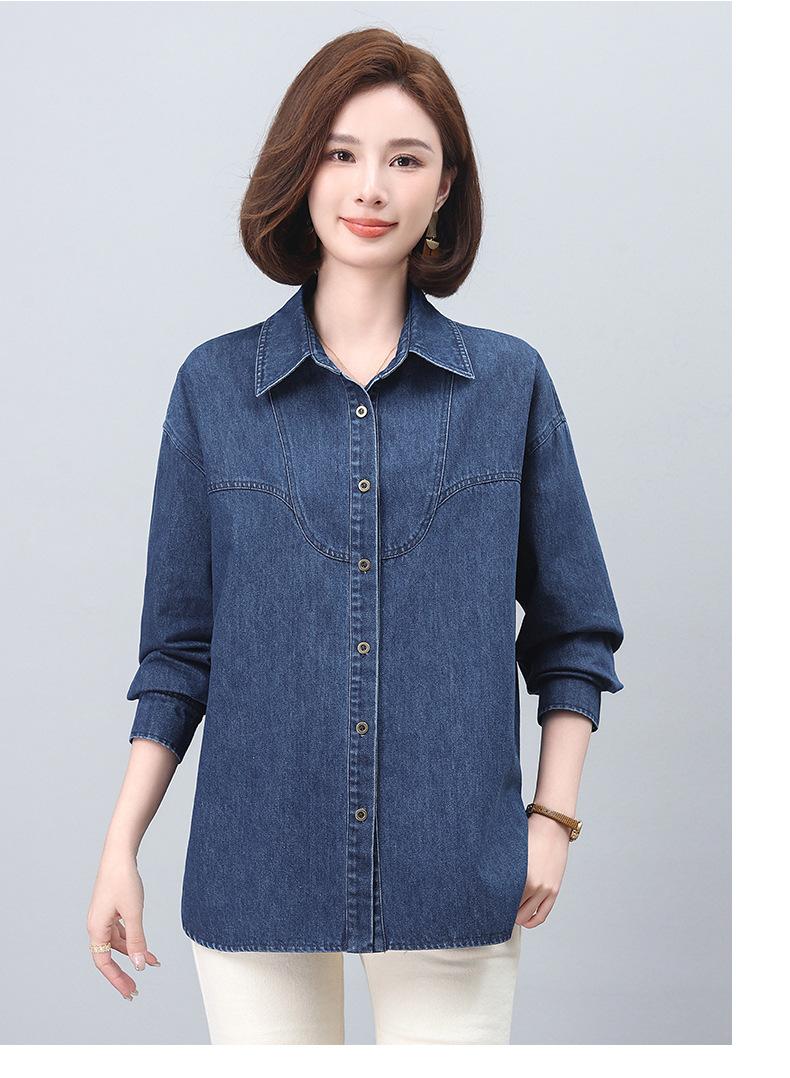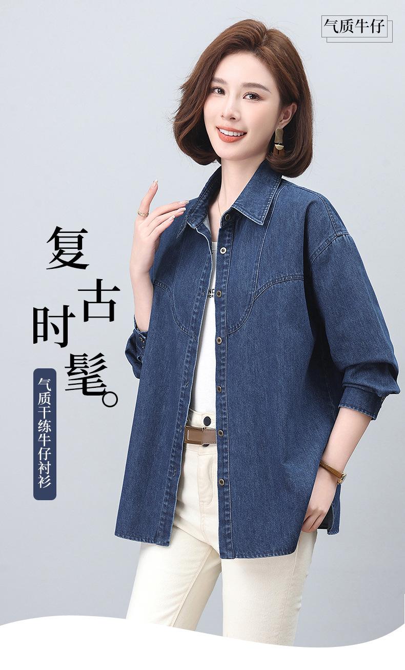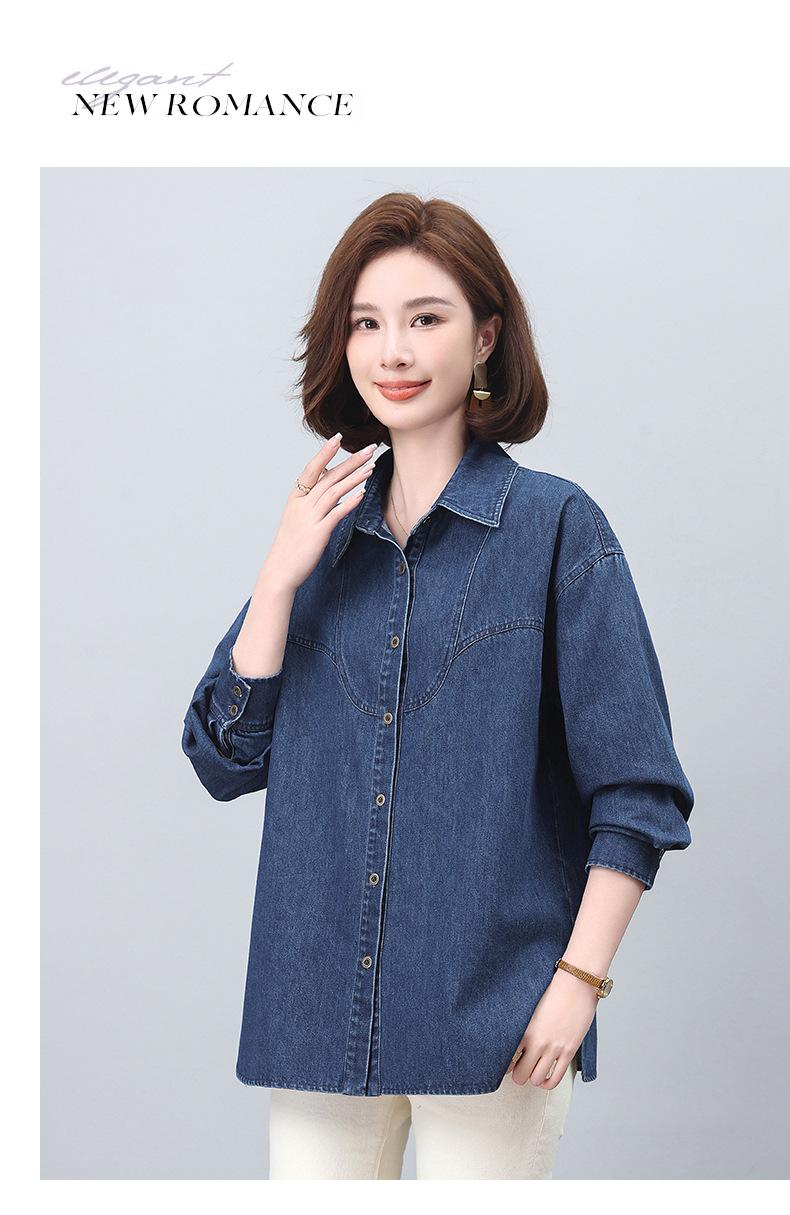 Camisa vaquera para mujer, abrigo fino de primavera y otoño 2024, nueva chaqueta holgada de manga larga para madres de mediana edad, estilo occidental, antiedad.