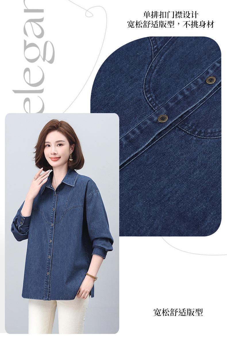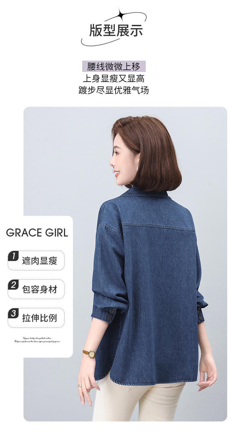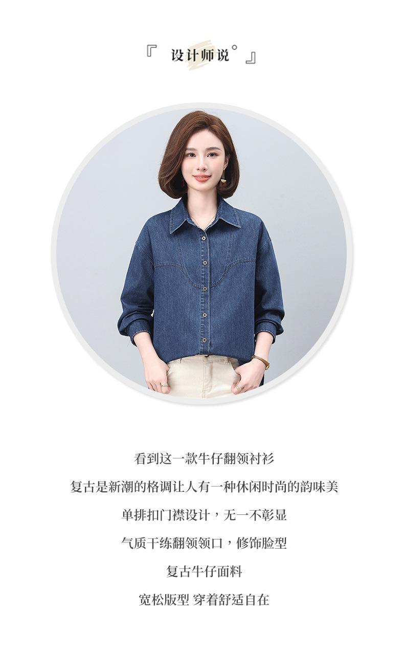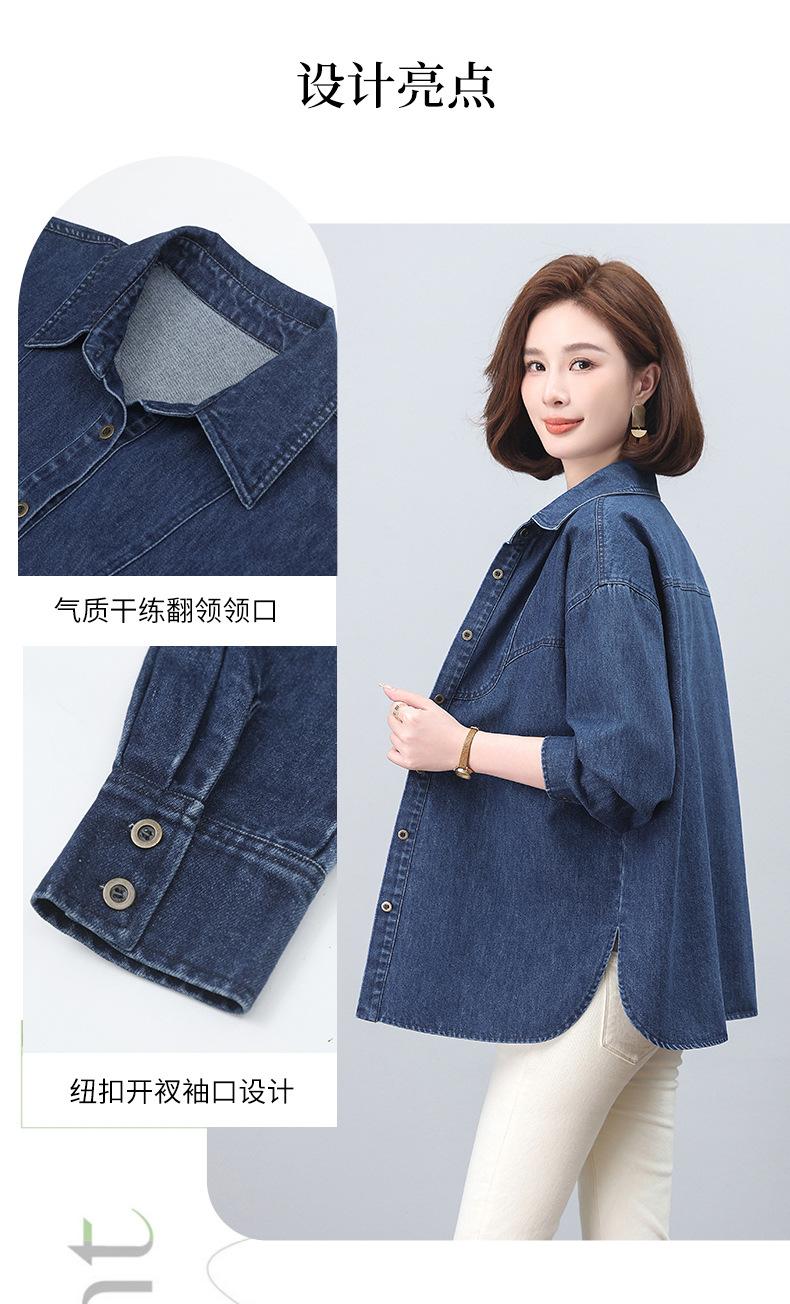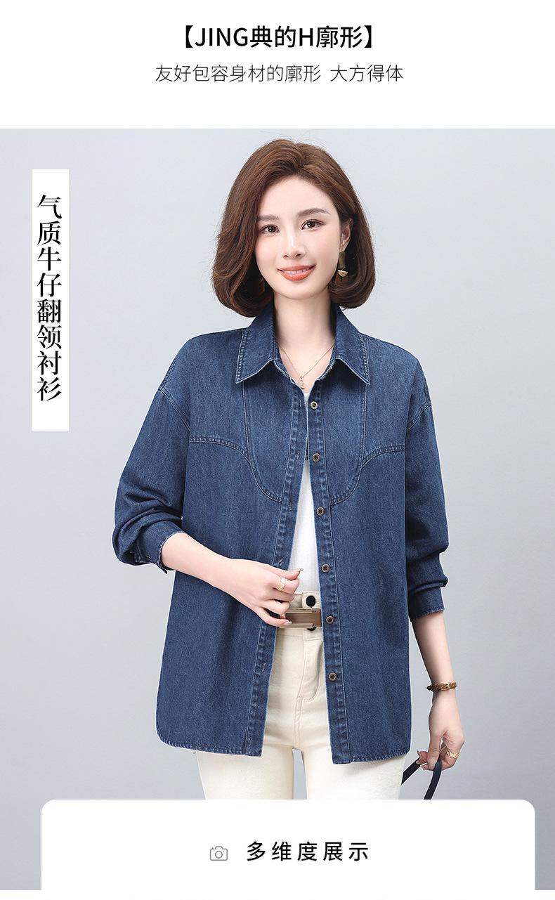 Camisa vaquera para mujer, abrigo fino de primavera y otoño 2024, nueva chaqueta holgada de manga larga para madres de mediana edad, estilo occidental, antiedad.