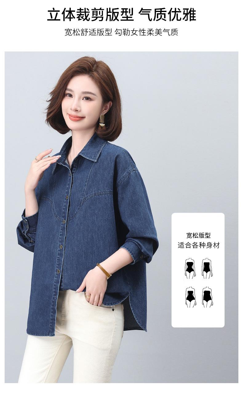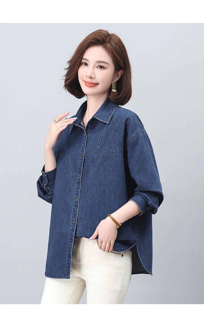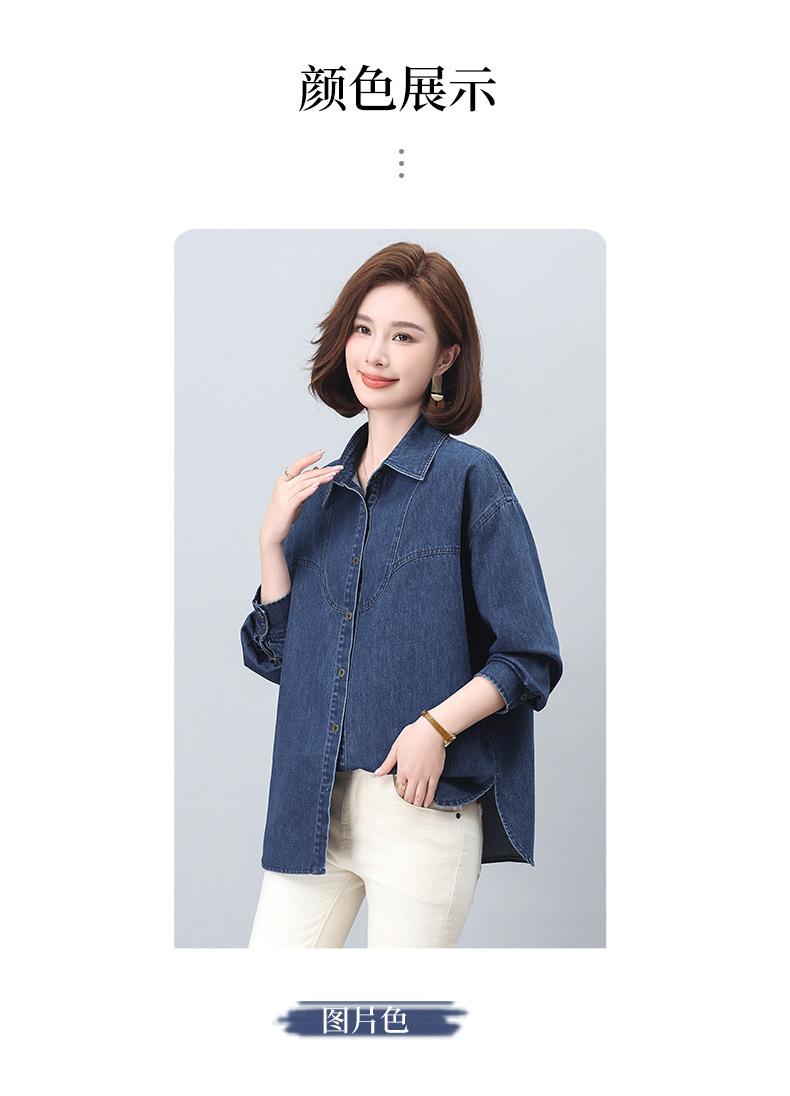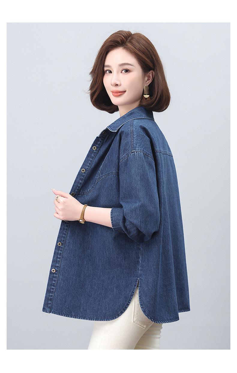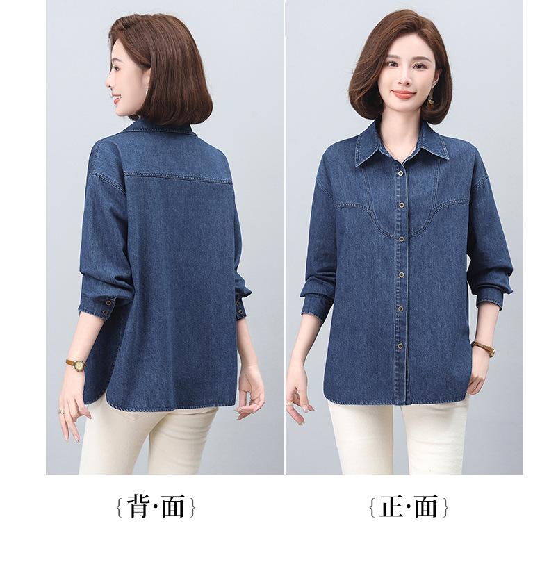 Camisa vaquera para mujer, abrigo fino de primavera y otoño 2024, nueva chaqueta holgada de manga larga para madres de mediana edad, estilo occidental, antiedad.