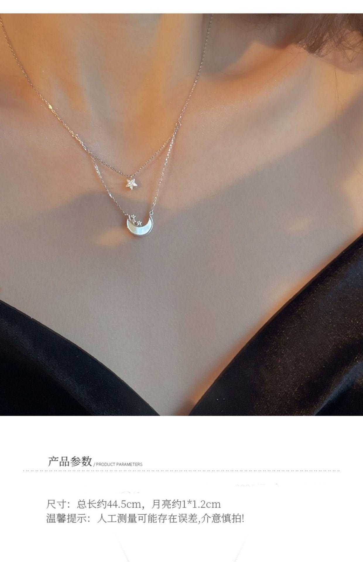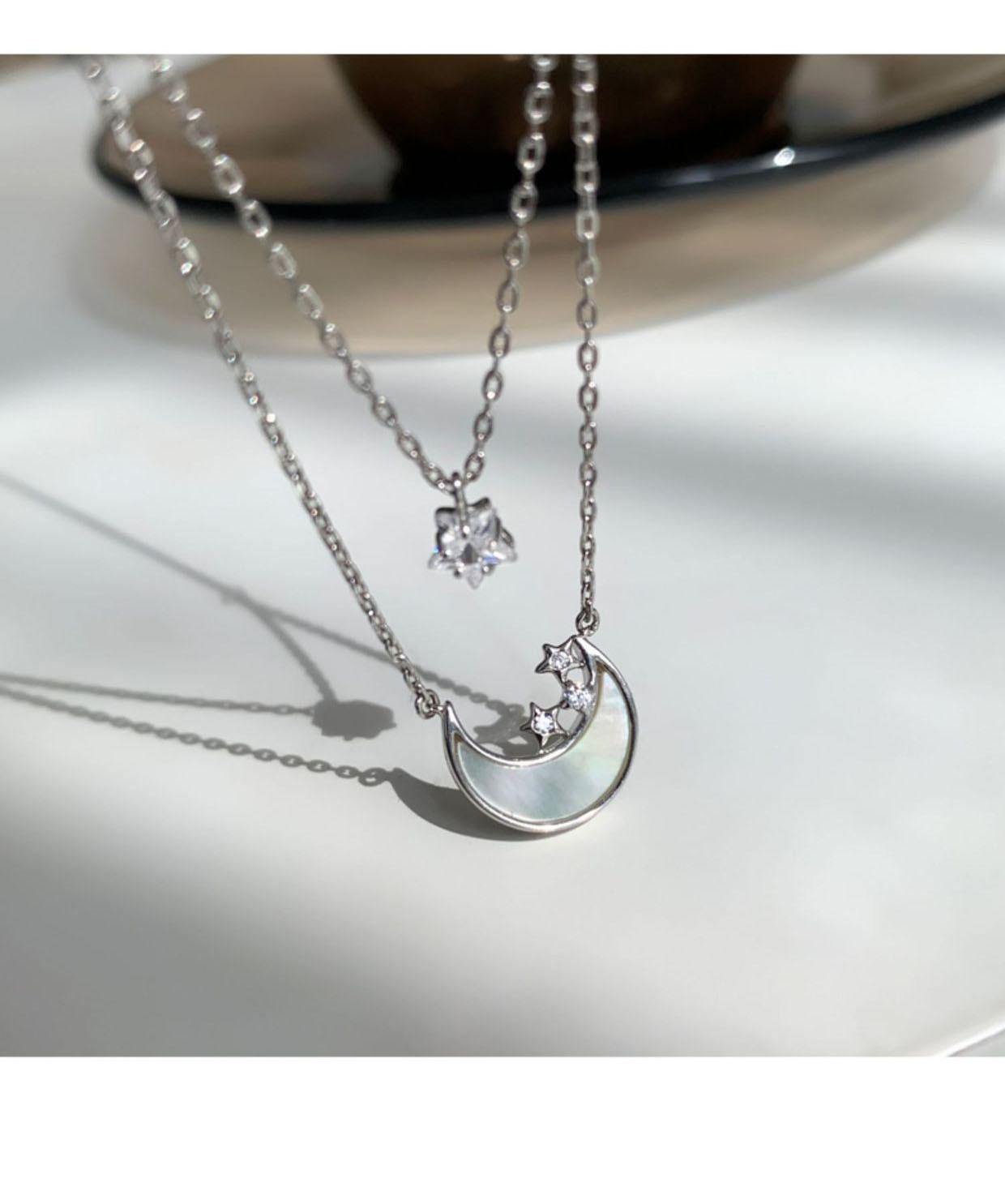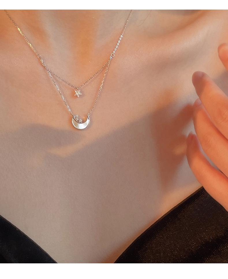 Nuevo collar de doble capa con forma de estrella y luna, cadena de clavícula femenina, diseño de nicho simple y fresco que combina con todo, joyería al por mayor en vivo