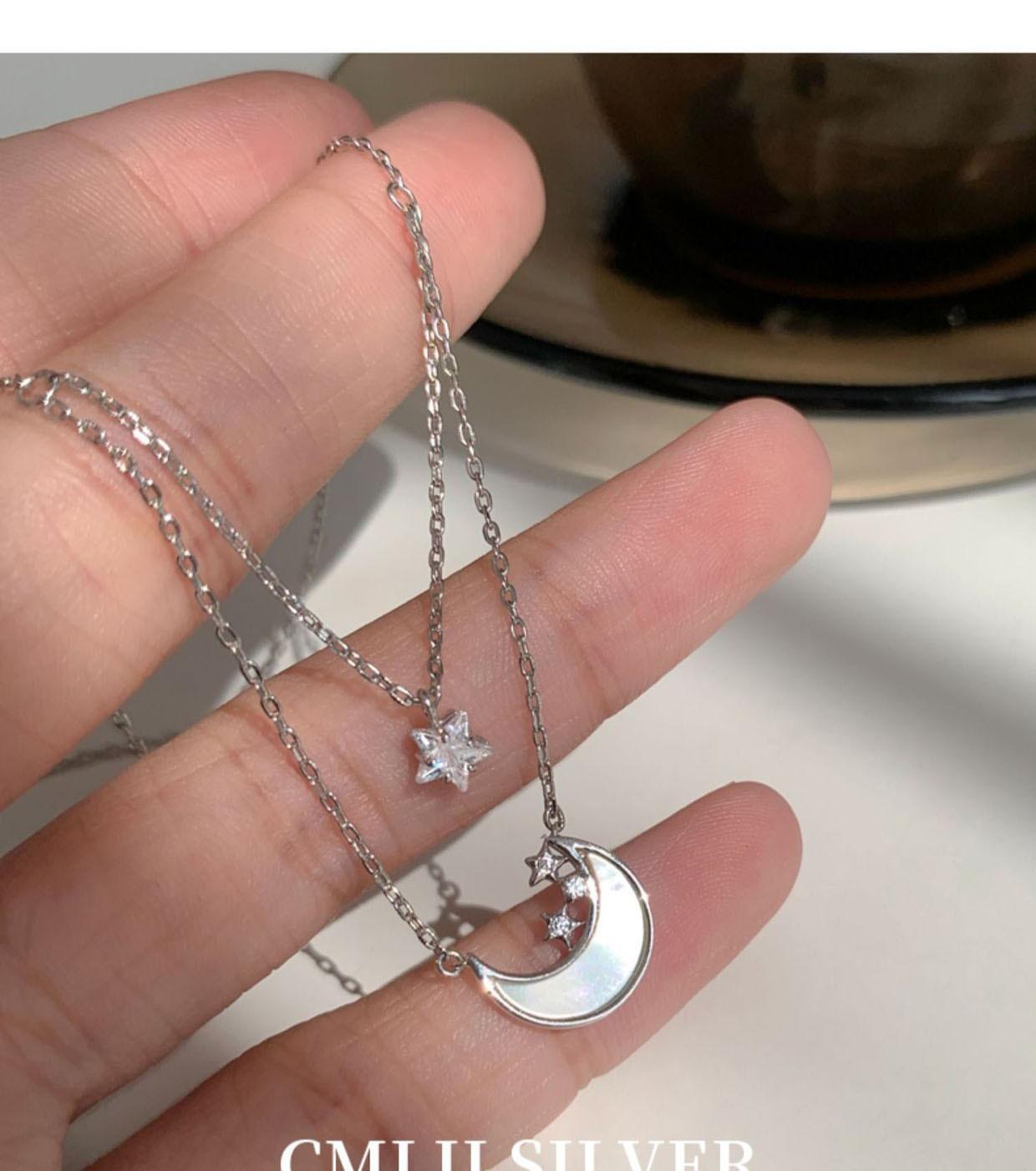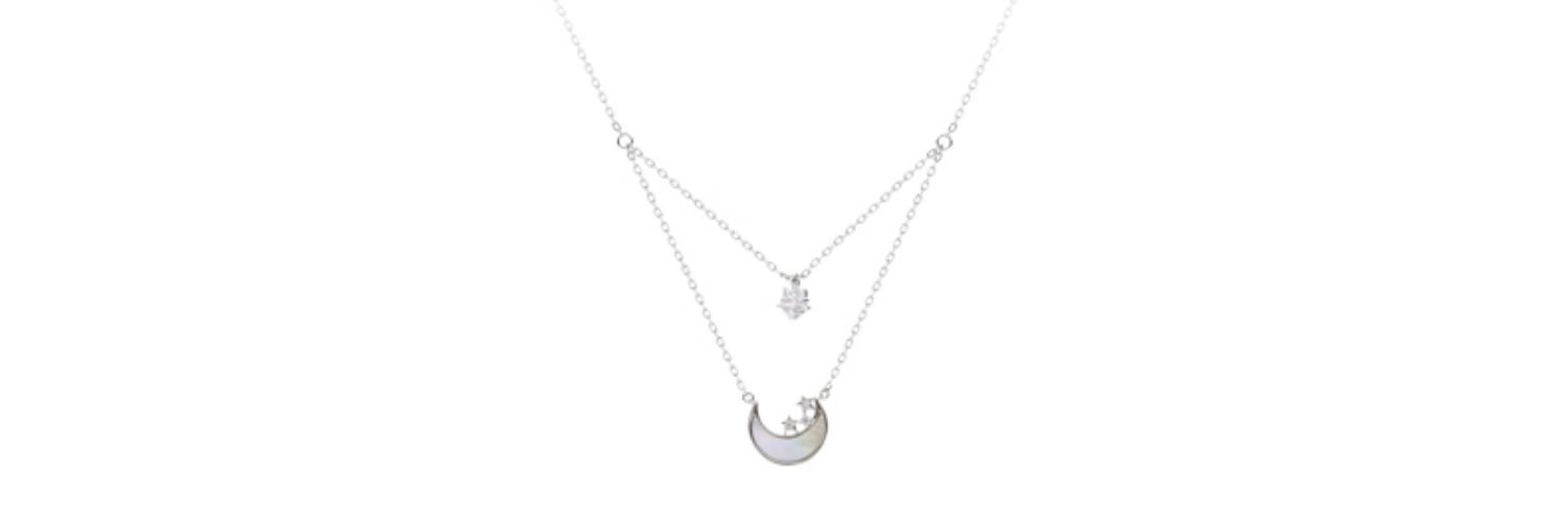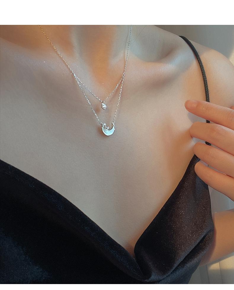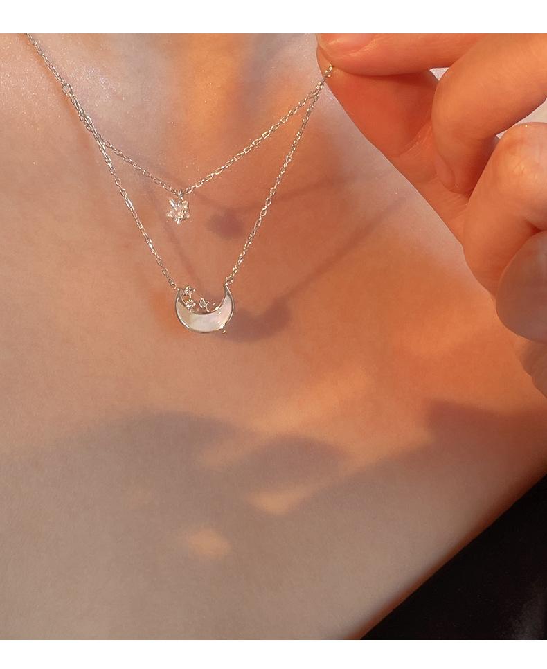 Nuevo collar de doble capa con forma de estrella y luna, cadena de clavícula femenina, diseño de nicho simple y fresco que combina con todo, joyería al por mayor en vivo