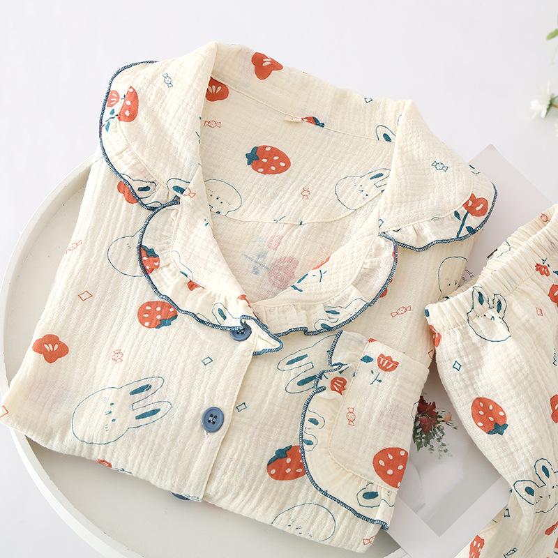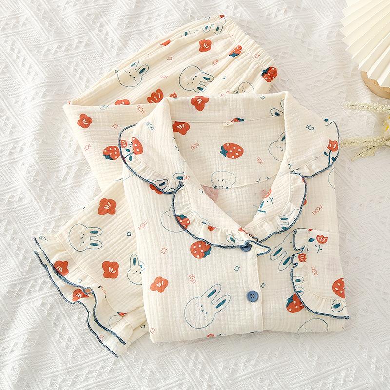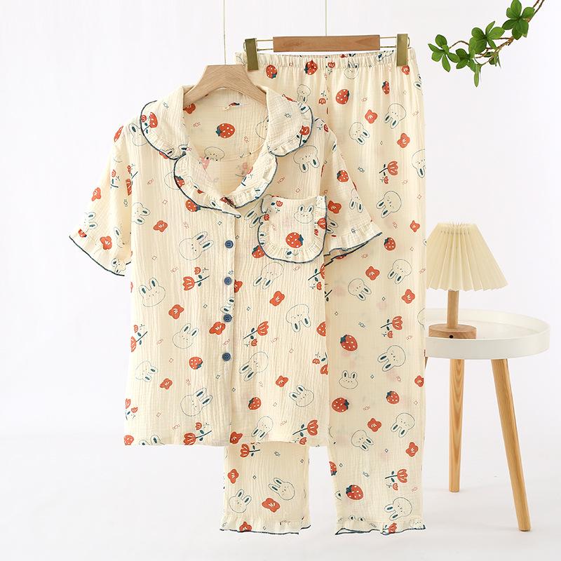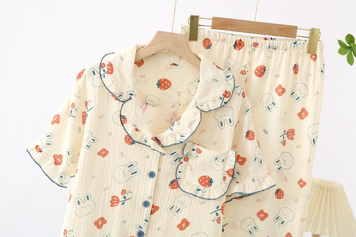 Strawberry Rabbit Crepe Short Sleeve Trousers