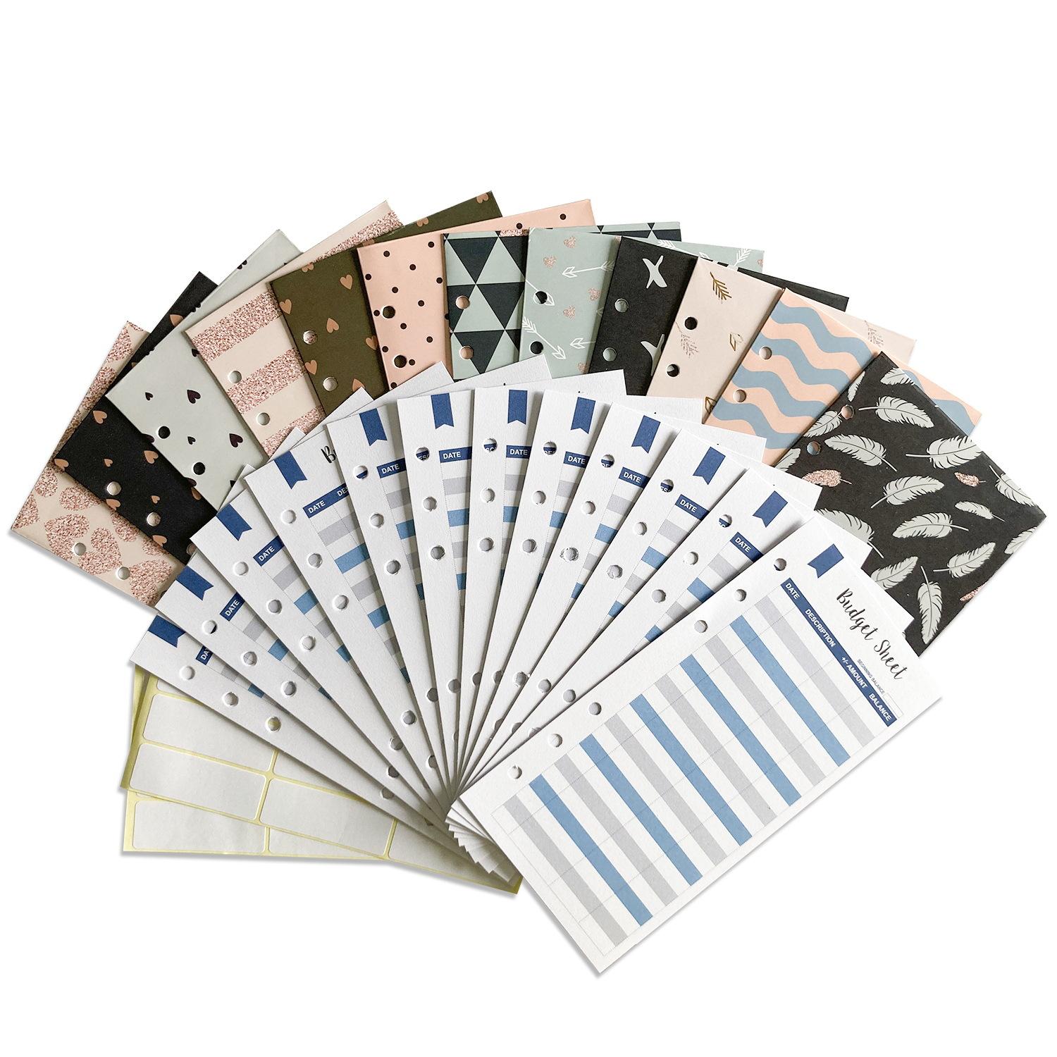 Suministro Transfronterizo de Juego de Sobres de Efectivo para Presupuesto, Estampado Floral Pequeño Fresco e Independiente, A6 Perforado, Caja de Regalo