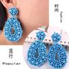 Pendientes de cuentas de arroz tejidas a mano, de gran venta transfronteriza en Amazon, con clip de gota de agua de doble cara exagerada de estilo europeo y americano para mujer.