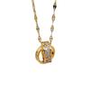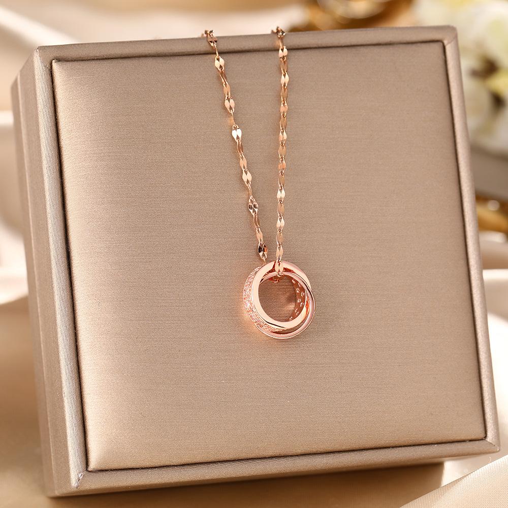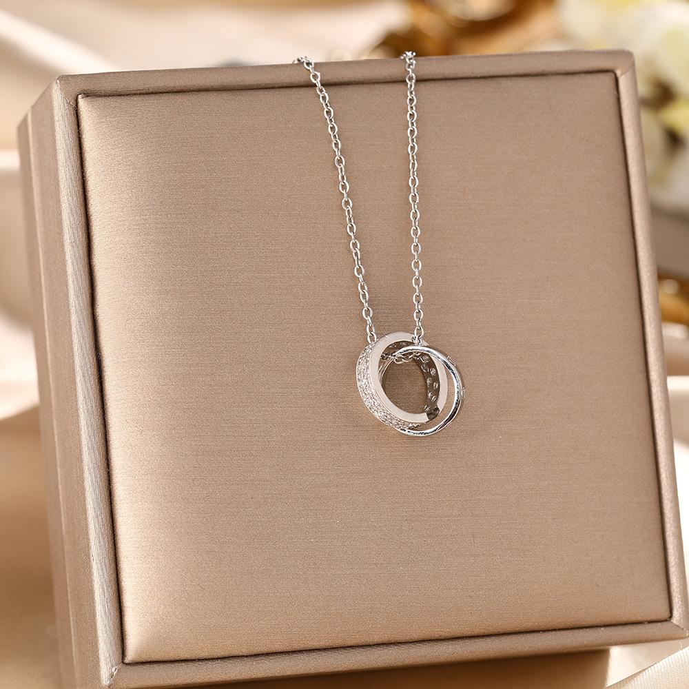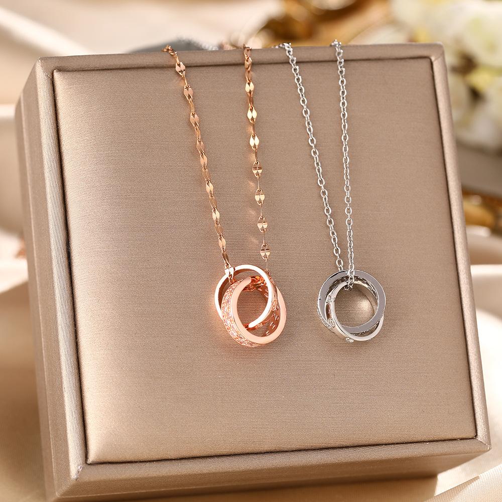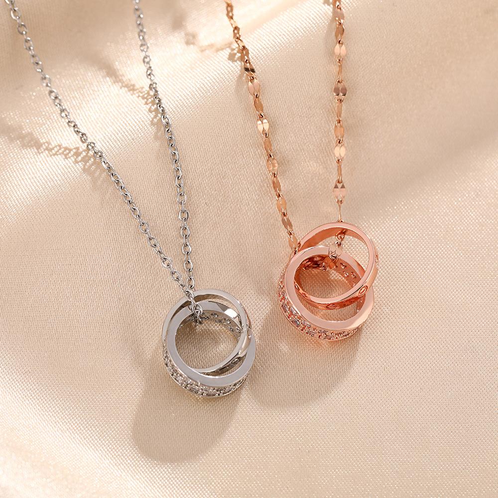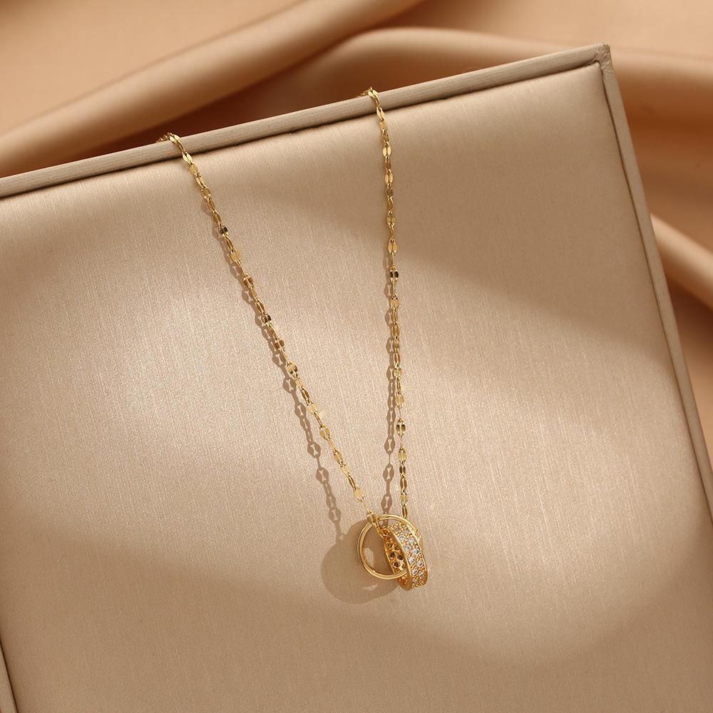 Collar de acero de titanio transfronterizo japonés y coreano para mujer, con temperamento, hebilla de anillo a juego, doble anillo, microincrustaciones de diamantes, cadena corta para clavícula, joyería