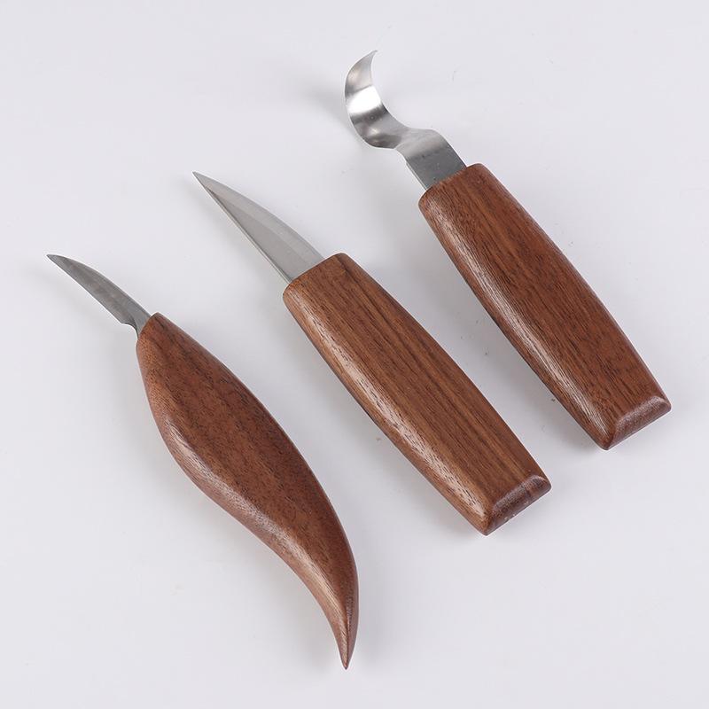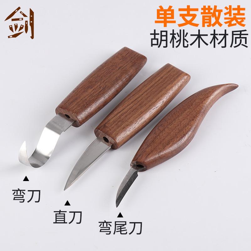 Venta única de cuchillos para tallar nogal de espuma con embalaje, cuchillo curvo, cuchillo recto, cuchillo de cola curva, herramientas de tallado de madera de comercio exterior al por mayor