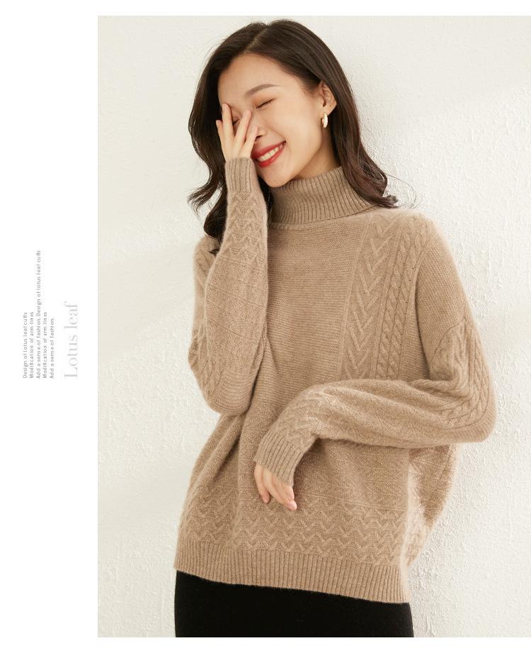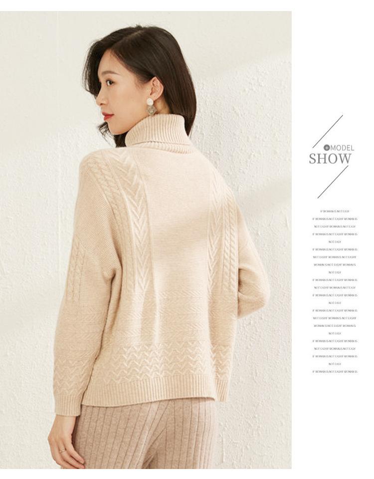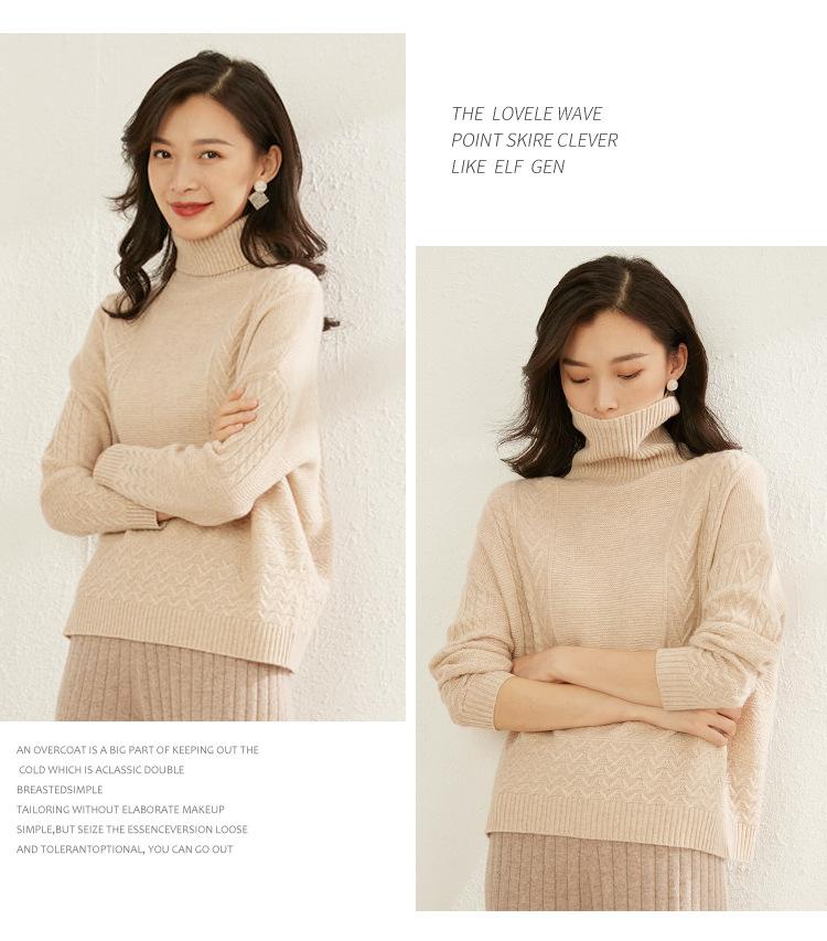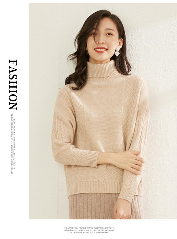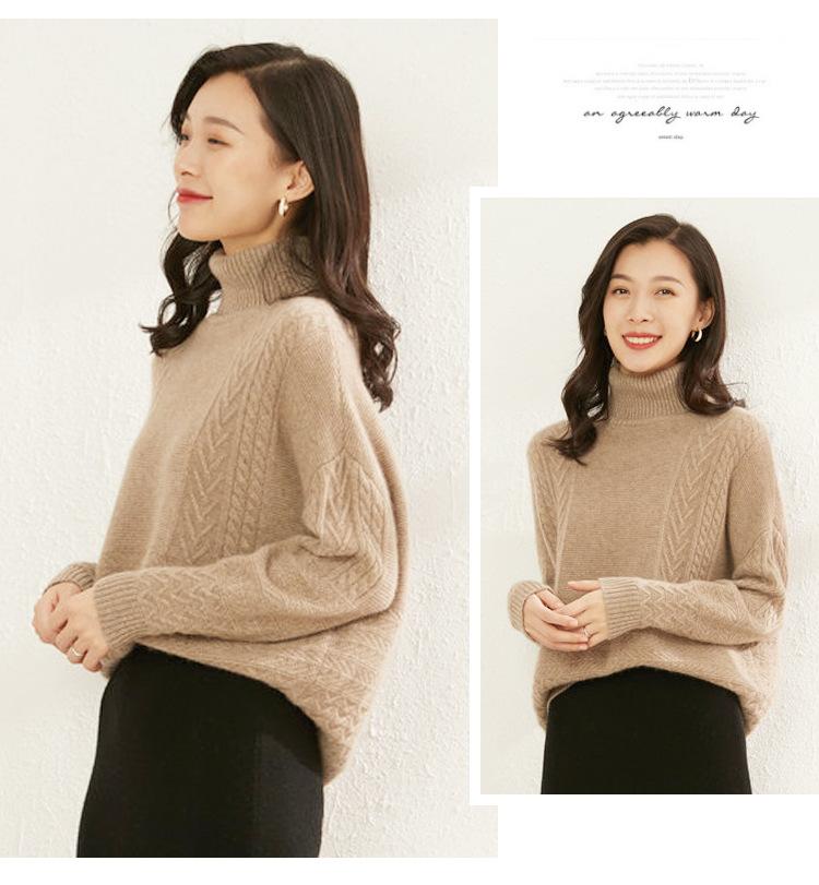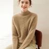 Suéter de cachemira de cuello alto estilo coreano para mujer, jersey de cachemira 100% pura, grueso, de manga larga y color liso, para otoño e invierno.