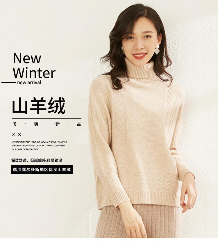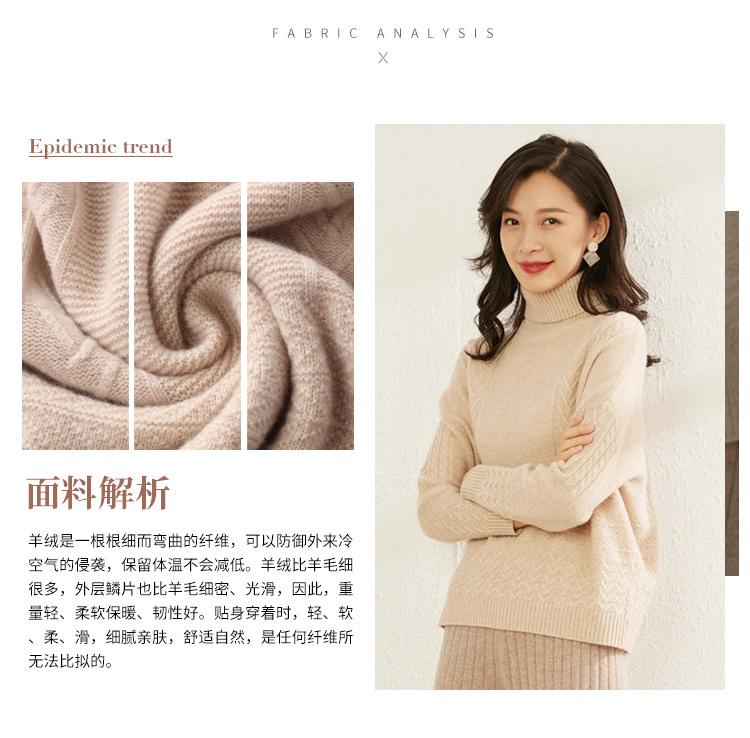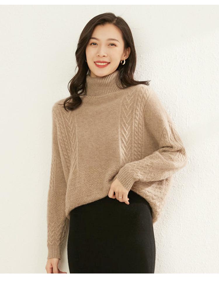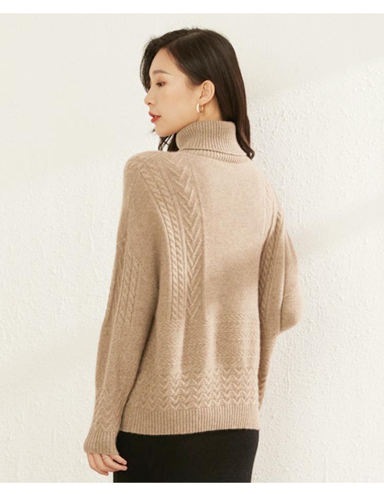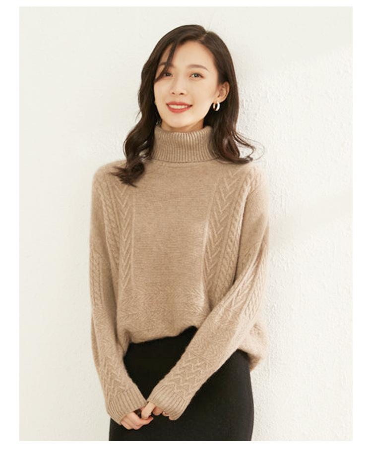 Suéter de cachemira de cuello alto estilo coreano para mujer, jersey de cachemira 100% pura, grueso, de manga larga y color liso, para otoño e invierno.